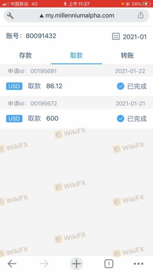 Yo invertí enMillennium Alpha en 2018. En ese momento, pude retirar fondos. A finales de 2020, no me dejaré retirar fondos. Mi cuenta fue bloqueada. Muy triste, contactar al servicio al cliente no lo resolverá. Espero que todos los amigos aprendan de ello.