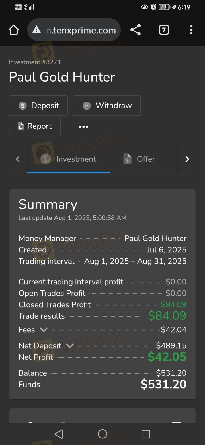 tenxprime no puede retirar Fui estafado por ese corredor utilizando la opción de inversor PAMM bajo el nombre de PAUL THW GOLD HUNTER, el corredor no responde ni él tampoco. Esta es una foto del PAMM y también la foto de Paul por si ayuda.