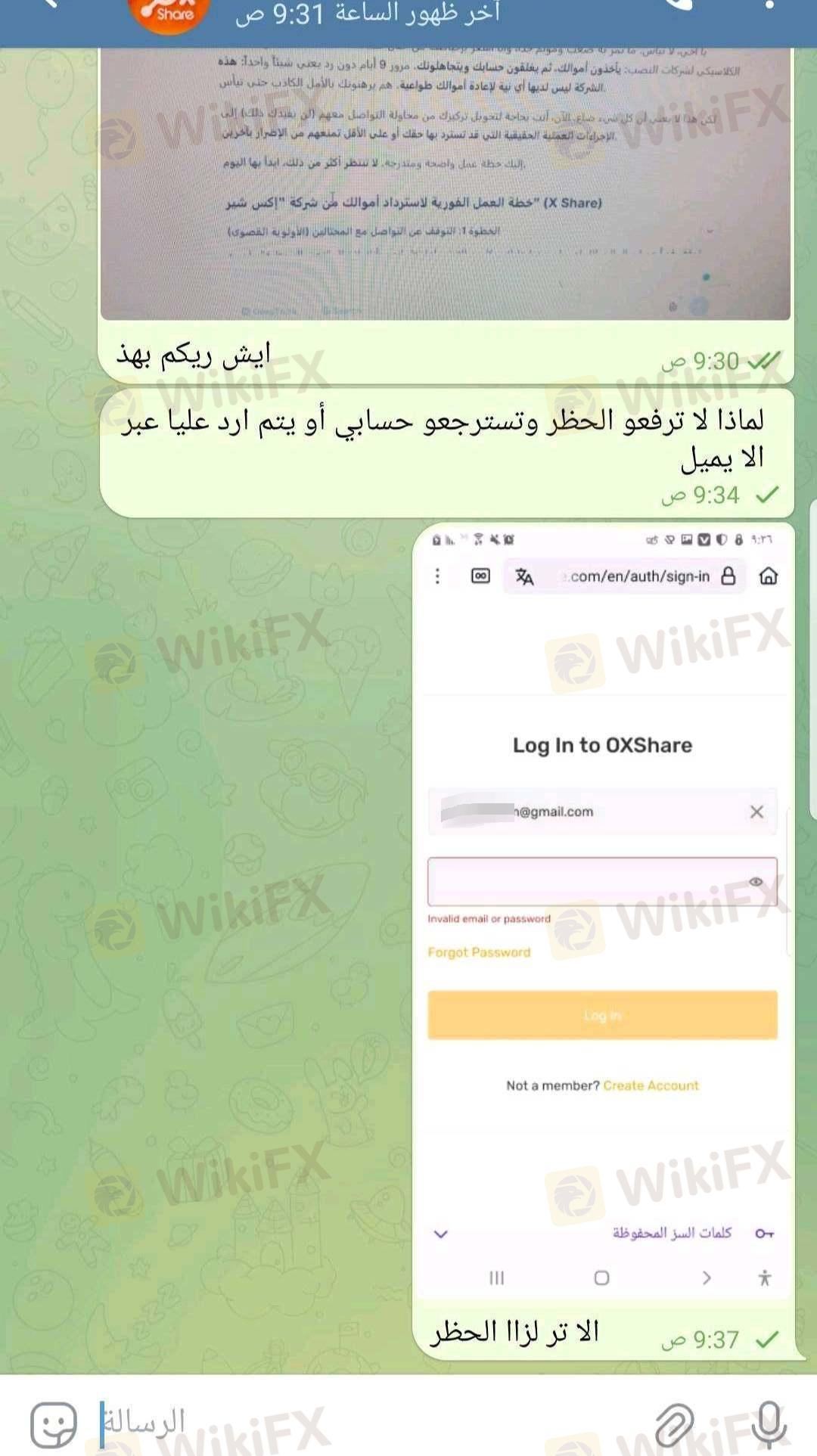 ⚠️ Queja y Advertencia sobre OXShare ⚠️ Presento esta queja para advertir a los traders sobre mi experiencia con OXShare. Deposité $426 a través de USDT (red TRC20). Poco después, mi cuenta fue bloqueada y se me impidió acceder a mis fondos. Intenté comunicarme mediante: - Soporte técnico - Correo electrónico - Telegram Sin embargo, el problema aún no se ha resuelto. Tras revisar la información de la empresa, se reveló que: Están registrados únicamente en Santa Lucía (IBC), lo cual es un registro comercial y no una licencia de corretaje financiero. No existe una licencia clara de una autoridad reguladora sólida como la FCA o ASIC. Hay quejas repetidas de traders respecto a la dificultad o negativa para realizar operaciones de retiro. ⚠️ Aconsejo a cualquier trader que no transfiera fondos a través de monedas digitales a una plataforma que no esté sujeta a una Regulación financiera sólida. Solicito a la administración de WikiFX que investigue el estado regulatorio de la empresa y aclare oficialmente el estado de la licencia para proteger a los inversores.