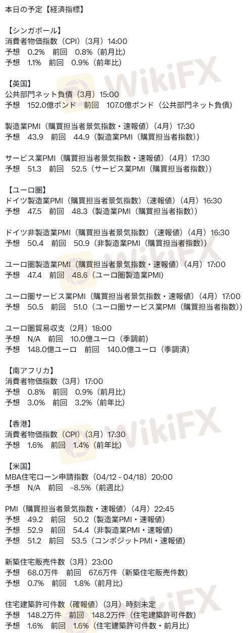 PMI(購買担当者景気指数・速報値)(4月)22:45