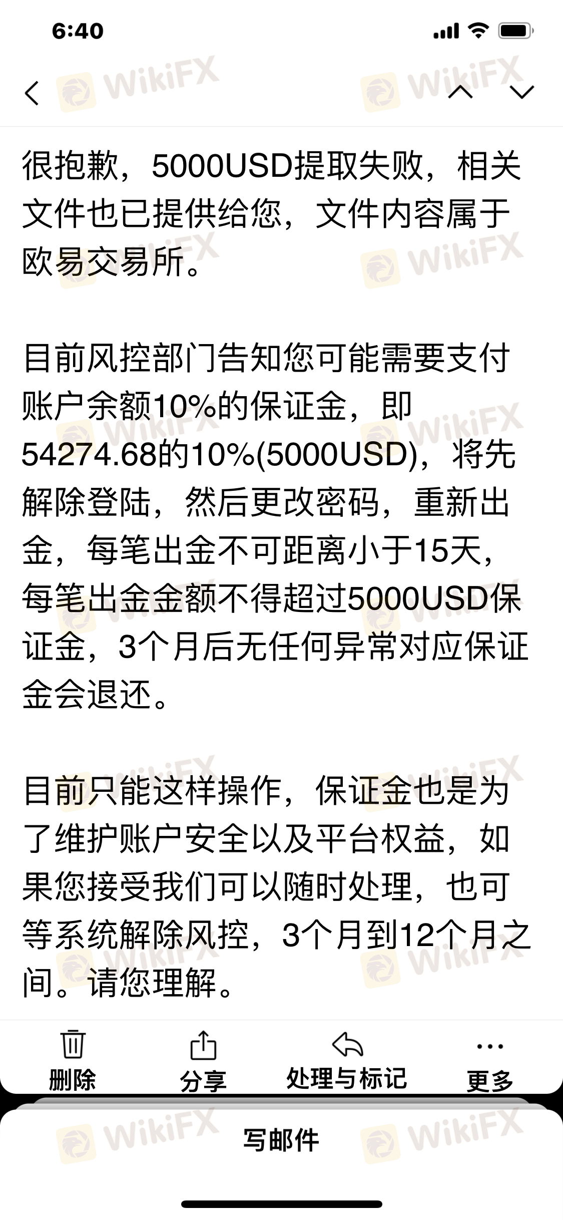 最近二天和M S沟通无任何进展,还得交5000美元保证金,请问M s平台,保证了什么,你们提出要的资料,都提交给你们,本身就是你们平台的问题,强压给投资者,让投资者买单,