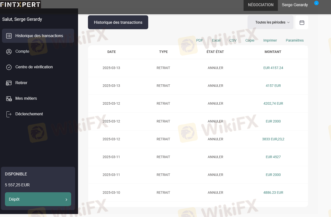 voila sa fait trois moi que je suis sur fintexpert.com j ai 4500 euro a avoir j ai fait 30 demande tous refuse fintexpert et un arnaqueur or du commun je suis ruine a cause de lui aux départ tu a des gestionnaire de compte ici sa fait un moi que j ai plus de contact quant tu envoie un émail aux support il le rejeté