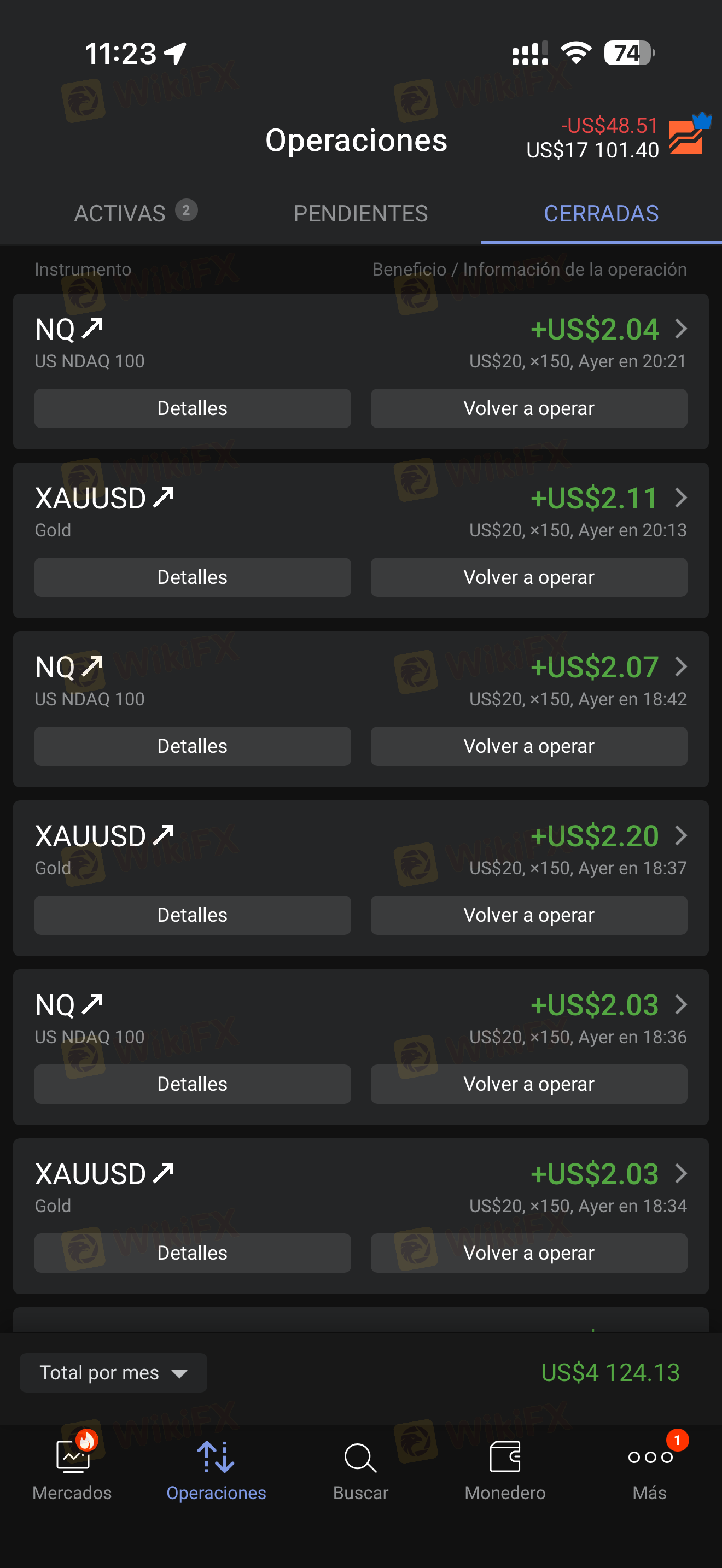 | Instrumentos de Mercado | Stock CFDS, criptomonedas, forex, metales, índices, materias primas, ETFs, Bonos |
