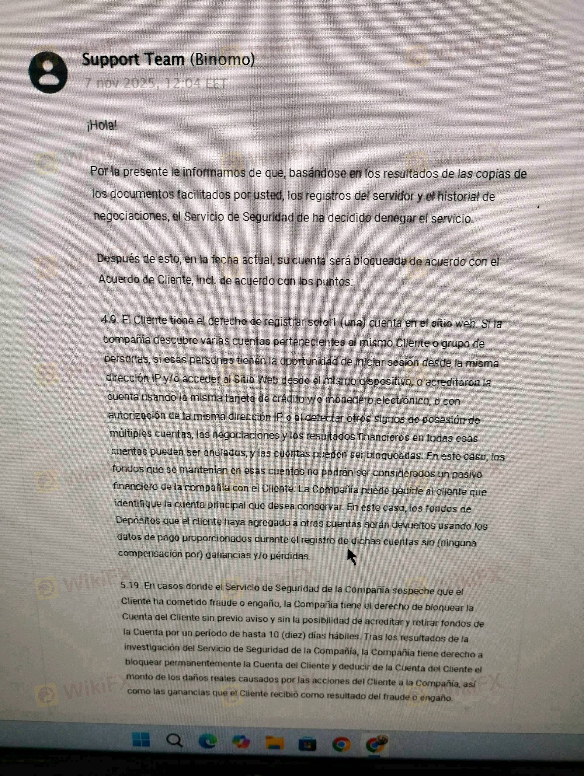 Después de un tiempo de hacerle muchos depósitos, validaciones de cuenta, empezaron a denegarme los retiros. La ventana aparecía con la leyenda "retiros suspendidos", contacté a soporte y éste solo daba respuestas automáticas. A los días me bloquearon permanentemente la cuenta, solo explicaron que fue por "acciones sospechosas y fraude" y dejaron de contestar, se quedaron con mi dinero invertido y mis ganancias. Perdí cerca de 15 mil dólares en ese broker, quedé en banca rota. No se dejen engañar, ese broker dejó de ser confiable. No pierdan su patrimonio, su tiempo ni su dinero EN BINOMO. No les va a respetar ni su dinero ni su cuenta.