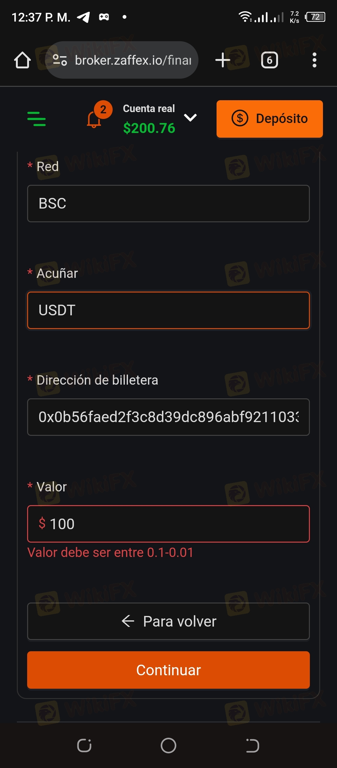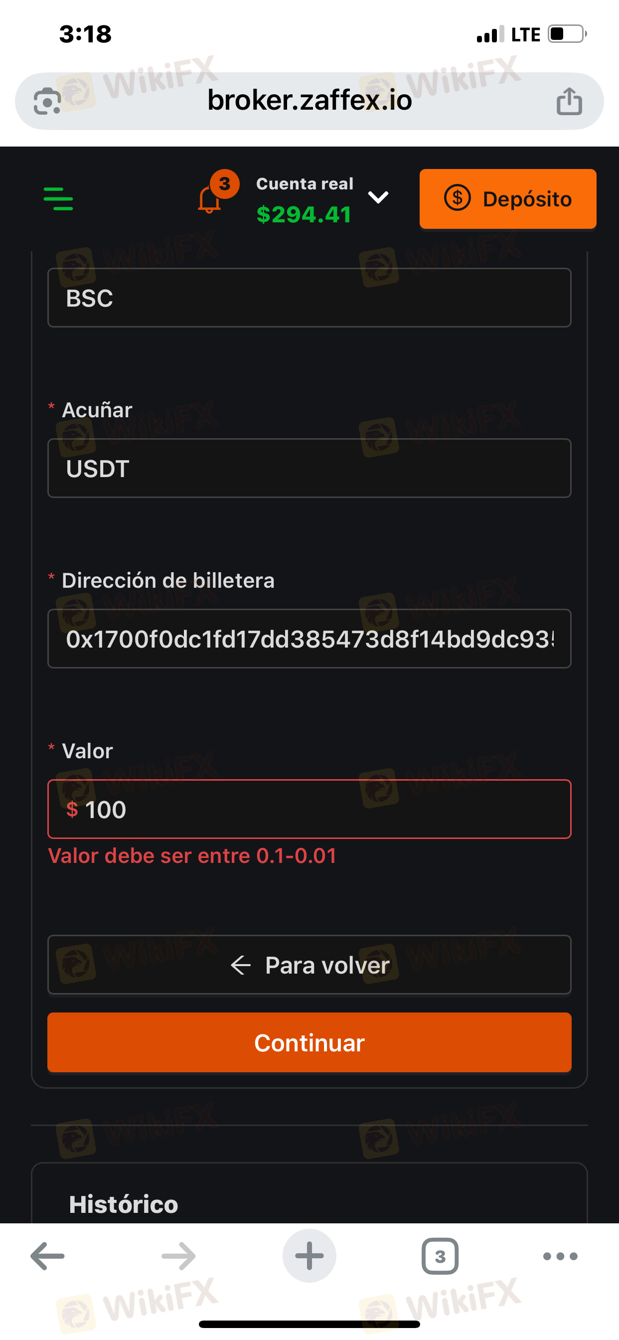 Zaffex congela los fondos de los clientes, si continúa operando, solo puede retirar hasta 0,1 dólares estadounidenses, y los 294,31 dólares estadounidenses restantes están bloqueados,
