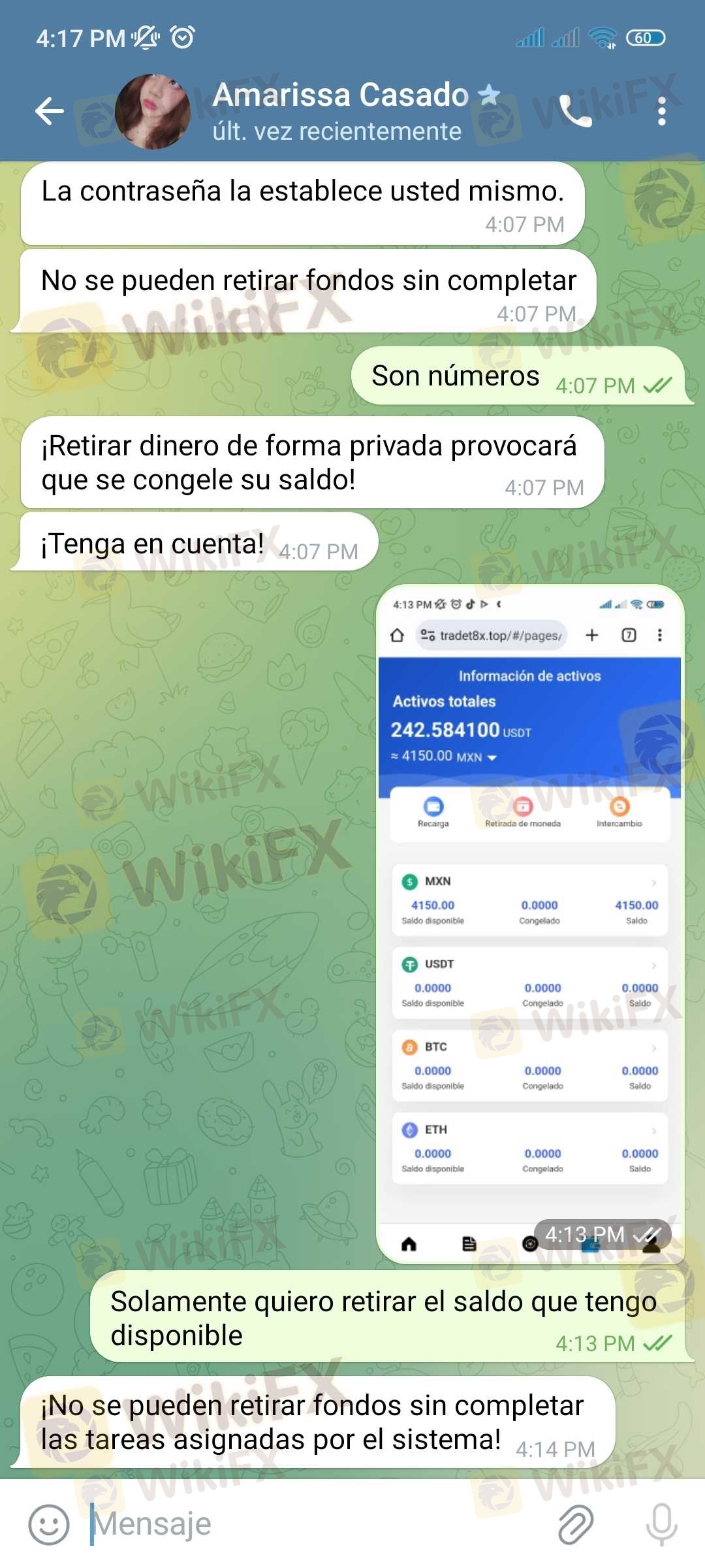 Me contactaron por ******** para trabajar desde casa y evaluar enlaces que me mandaban a través de la aplicación Telegram hasta que me empezaron a pedir depósitos para acompletar unas tareas para que me pudieran pagar comisión hasta exigirme una cantidad que no pude pagar y ahora no me quieren reembolsar mi dinero. Me dicen que tengo que depositar pero el dinero está en la página y se puede retirar pero no me dan la clave de retiro