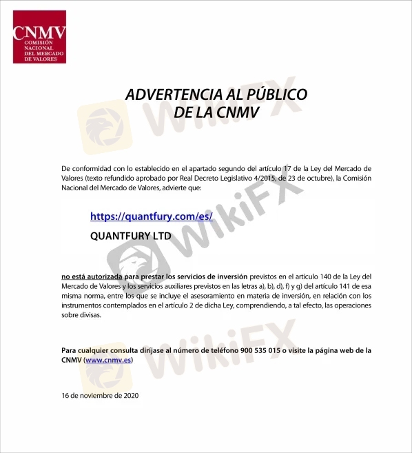 QUANTFURY fue denunciado por la CNMV en noviembre del 2020.