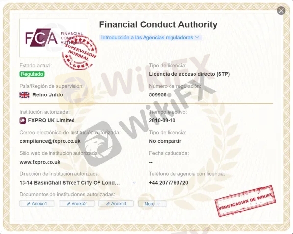 FxPro se registró en julio de 2006 en Chipre. Las actividades de la empresa están autorizadas por los reguladores financieros CySEC, 078/07 (Chipre); SCB, SIA-F184 (Is. Bahamas); FCA, 509956 (Reino Unido); y FSB, 45052 (Sudáfrica).
