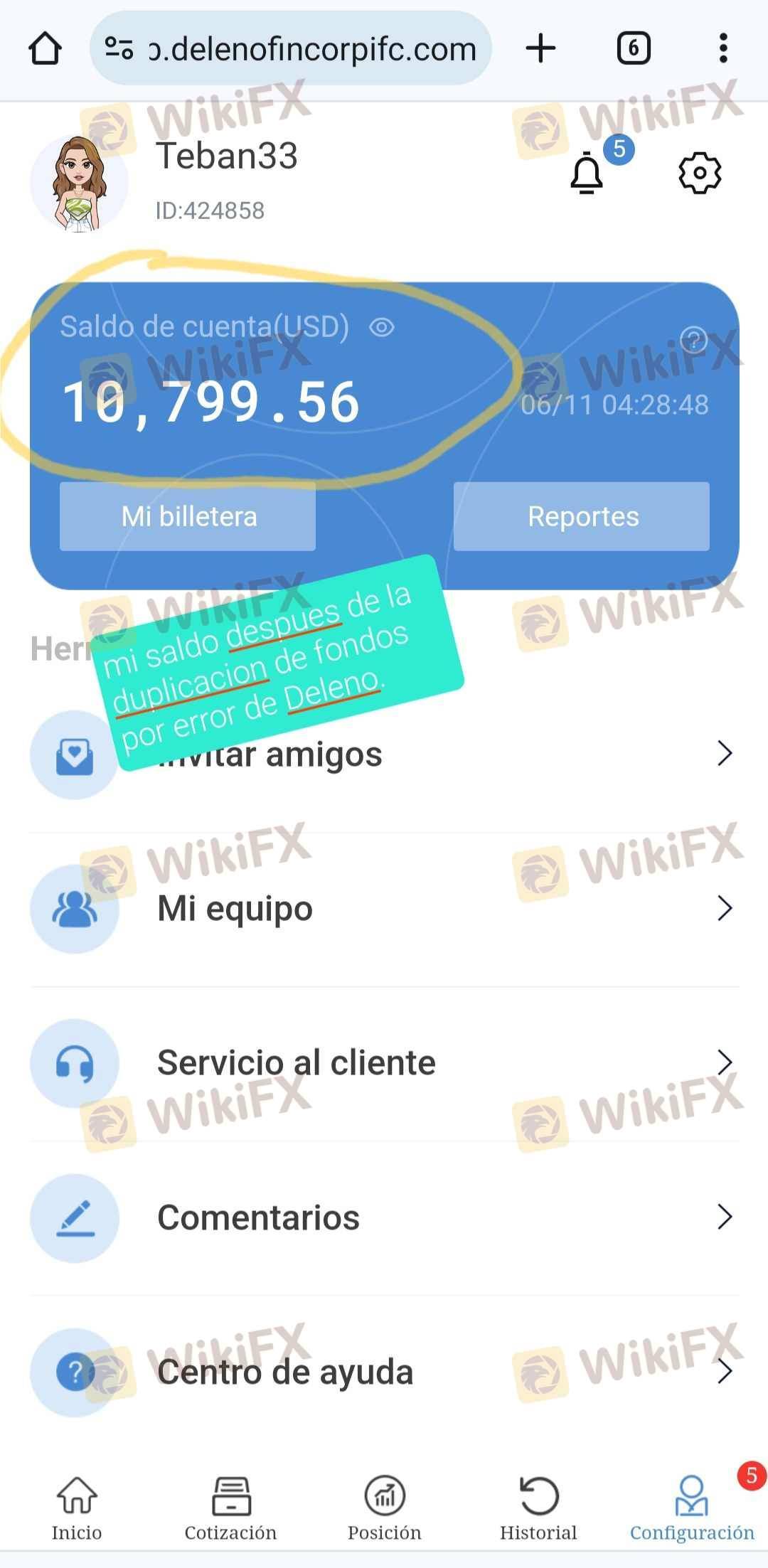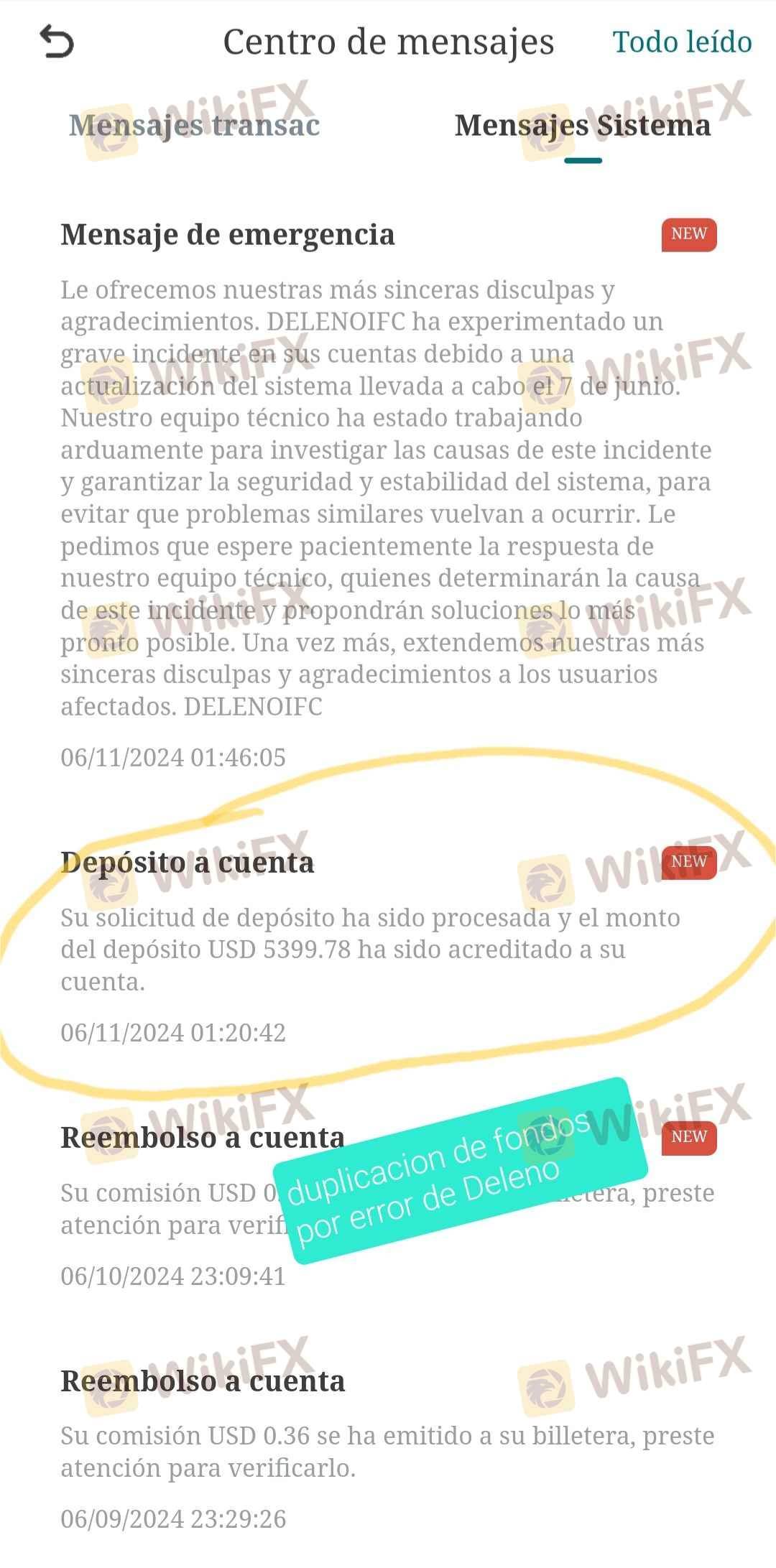 Deleno duplicó nuestros saldos, nos nos dejó retirar nuestro dinero hasta que depositaramos lo que ellos por error pusieron en nuestras cuentas. Los primeros que depositaron el dinero lograron retirar sus cuentas, esto solo era un engaño para que las demás personas hiciéramos lo mismo, pero esta vez quienes depositamos no pudimos recuperar, puesto que deleno cerró la plataforma, estafando a miles de usuarios. Solicito a ustedes gestionar la manera para la recuperación de mis fondos.