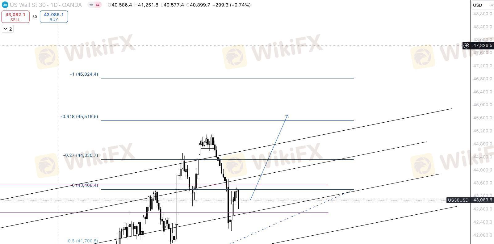 El US30 se proyecta hacia un repunte hacia máximos históricos, después de haber sido afectado por las tasas de interés. La llegada de Donald Trump podría impulsar aún más este repunte, llevando el índice a entre 46,000 y 50,000 puntos en el futuro cercano.