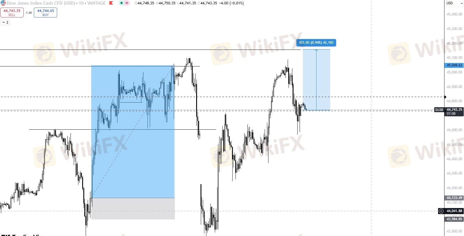 Si revisan mi análisis anterior logramos completar en un 99% el trade de toda la subida, pero hace poco los anuncios de Trump generó retrocesos. Así que nuevamente espero con la noticia de mañana NFP, que logre el precio romper y hacer un nuevo máximo histórico lo veremos cotizar arriba de los 45000 el Dow Jones.