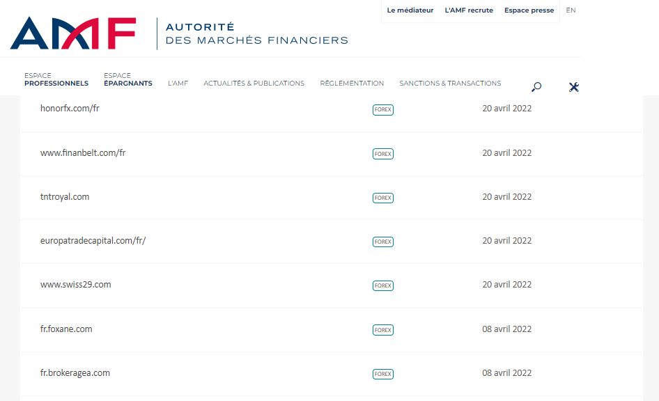 Esta es una lista de empresas o sitios web incluidos en la lista negra de la Autorité des Marchés Financiers (AMF), advertencias y/o usurpaciones de empresas reguladas.