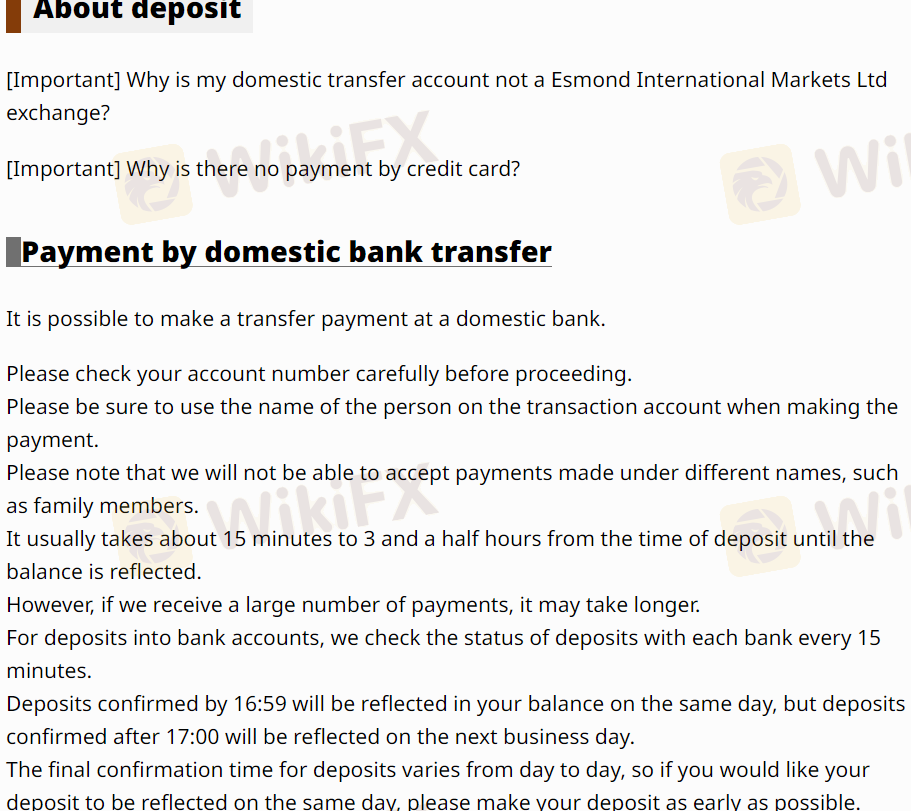 ESMOND's minimum deposit is decent, but it's not the lowest available. Their deposit and withdrawal process is efficient and easy to navigate, but it's not the most user-friendly interface.
