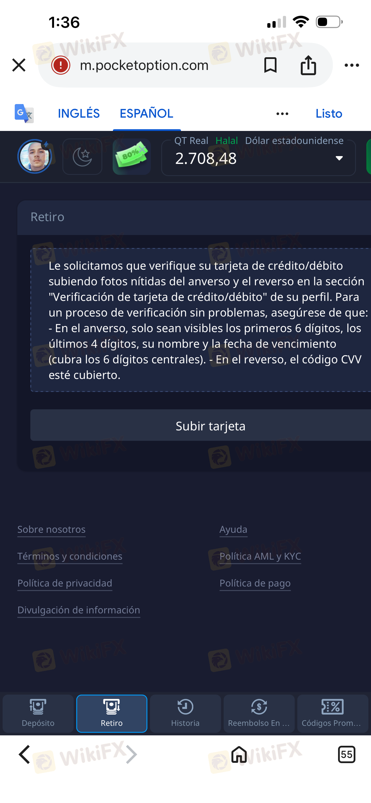 | Walang komisyon sa mga deposito at pag-withdraw | Di-malinaw na istraktura ng bayad |