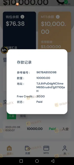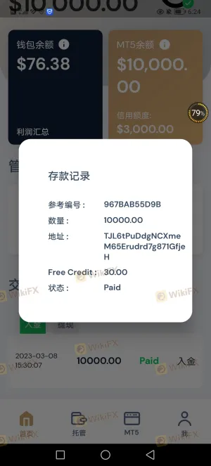 Nakipagtulungan sa Perry Capital, Perry Finance, at MSR upang magbigay ng mga channel ng deposito at withdrawal, at inihayag ang USDT recharge address ng deposito at deposito ni Perry sa opisyal na website. Ang deposito ay ginawa noong Marso 8, at ang pag-withdraw ay hindi pa mapapatakbo at ang account ay hindi pa natatanggap.