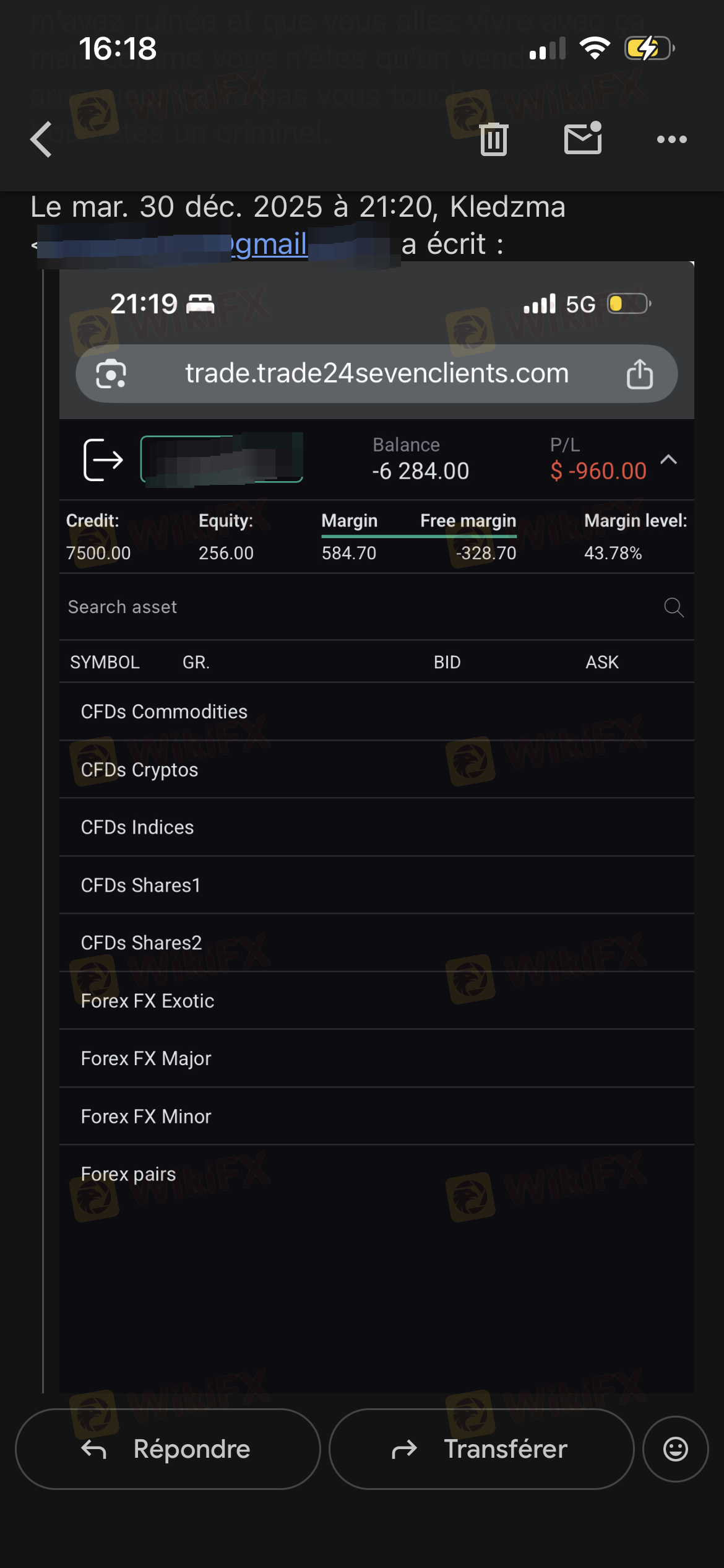 Ilang linggo na ang nakalipas, nagbukas ako ng live trading account sa InstaForex at nag-trade lang ng ilang araw. Sa maikling panahong ito, nakakuha ako ng halos 224 USD na kita sa pamamagitan ng pag-trade ng XAUUSD at CL gamit ang napakaliit na lot size (0.02). Bigla na lang, ibabawas ng InstaForex ang 215.5 USD mula sa aking balanse. Ito ay kita mula sa aking mga trade sa XAUUSD. Walang paunang abiso o malinaw na paliwanag. Nakipag-ugnayan ako sa kanilang support team at nag-email din. ang departamento ng anti-pandaraya. Ang kanilang mga tugon ay binanggit lamang ang isang sugnay mula sa kanilang kasunduan. Hindi nila ipinakita ang anumang partikular na numero ng kalakalan, mga log ng pagpapatupad, o patunay na nilabag ko ang anumang patakaran. Ako ay nagnegosyo nang manu-mano. Hindi ako gumamit ng anumang EA, robot, estratehiya ng arbitrage, o mataas na dalas ng kalakalan. Kung kinansela ng isang broker ang kita ng isang kliyente, naniniwala ako na dapat silang magbigay ng partikular na ebidensya sa kalakalan. Sa aking kaso, hindi ito Tapos na. Dahil sa karanasang ito, hindi na ako nagtitiwala sa InstaForex. Ikakabit ko ang mga screenshot ng aking trading history at mga email reply bilang ebidensya.
