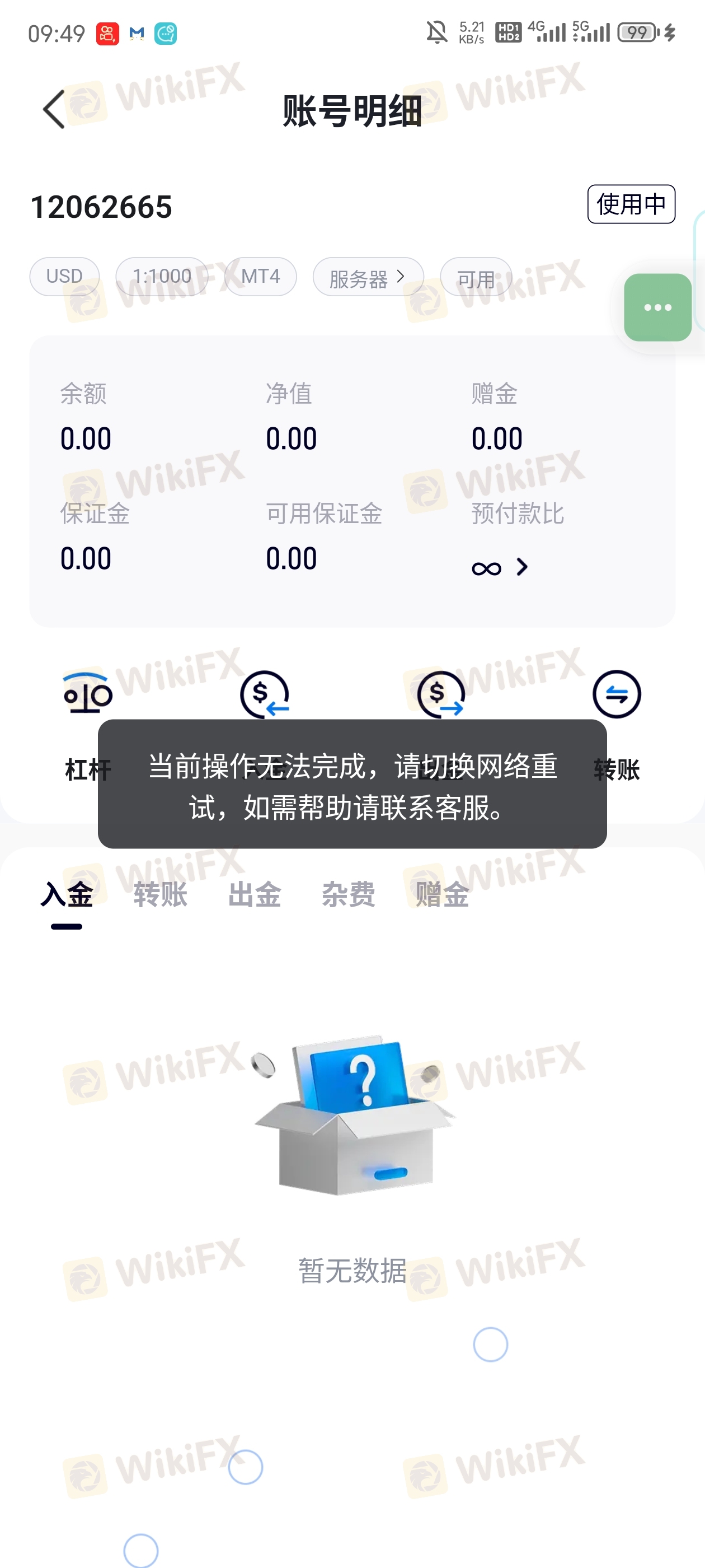 Ang withdrawal ay may limitasyon na hindi ipinapakita sa software, saka lang sinasabi kapag magwi-withdraw na, at ngayon ay hindi makapag-deposit o withdrawal, walang babala na posibleng scam at humihingi ng kompensasyon para sa lahat ng aking deposits kasama ang pandarayang kompensasyon na $5000