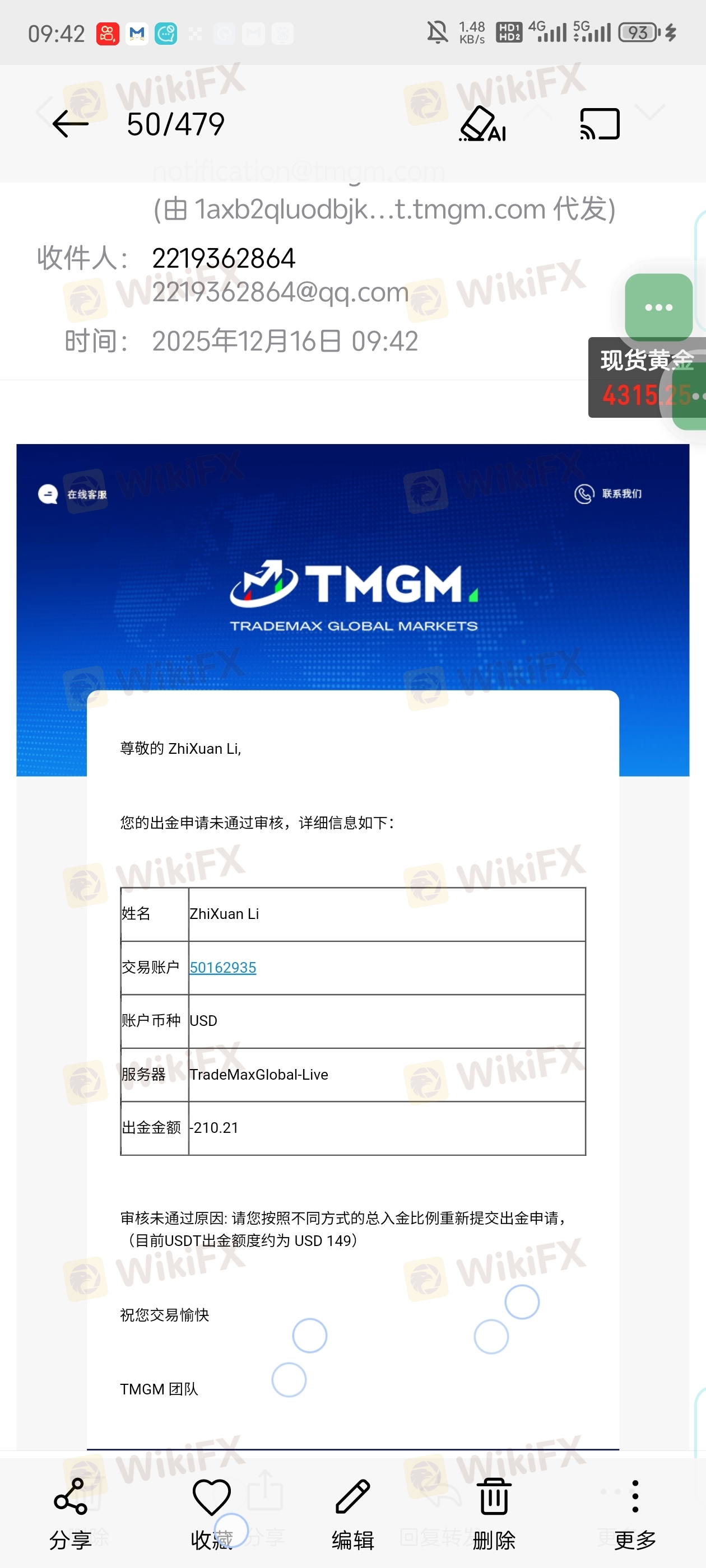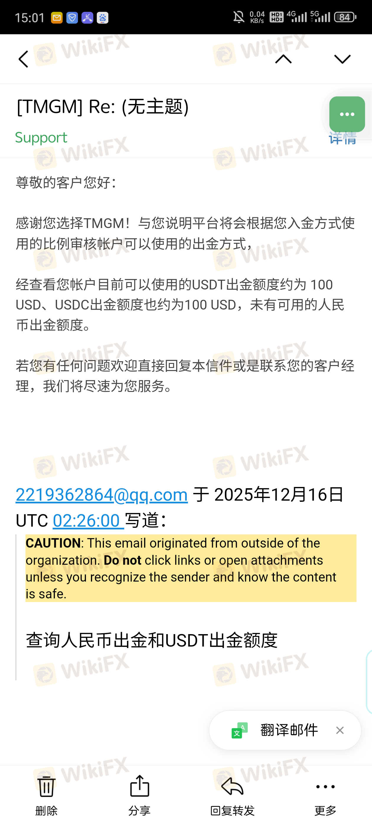 尊敬的客户您好,经查看,目前只收到有发送邮件咨询出金额度事宜,并无投诉邮件。目前已通知客户经理尽快与您联系进一步跟进了解详情。感谢您的关注与理解。如您有进一步问题,请您联系您的客户经理或TMGM官网客support@tmgm.com,欢迎随时与我们联系。