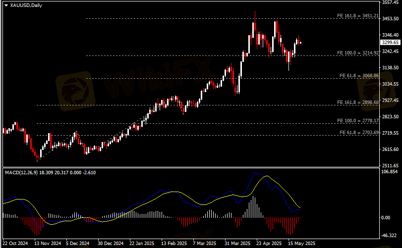 日线图显示金价回调下挫,当前仍收于3215支撑。从MACD来看,快慢线逐渐收窄,红色动能柱温和收缩。金价走势和动能柱的变化呈分歧。
