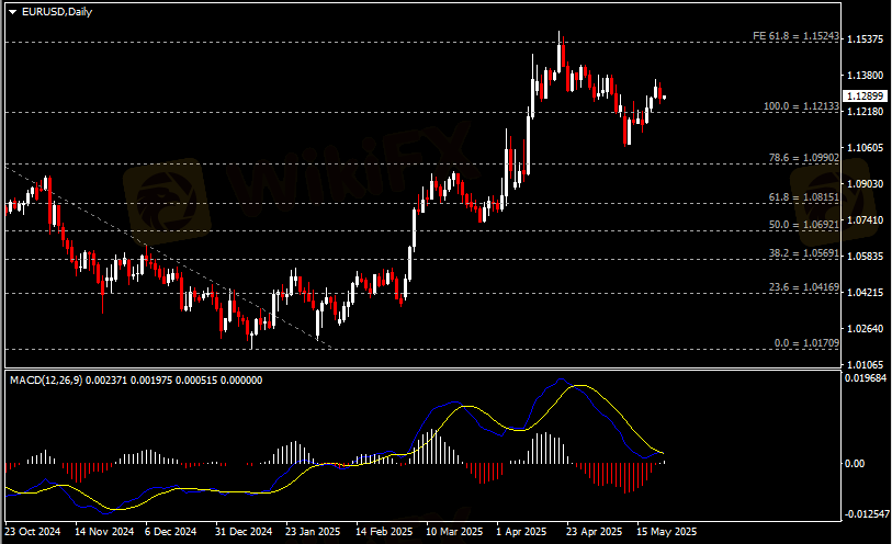 日线图显示欧元兑美元回调下跌,当前仍收于1.1210支撑。从MACD来看,快慢线金叉依旧,白色动能柱温和增量。汇价走势和动能柱的变化呈分歧。