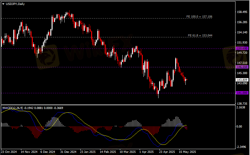 日线图显示美元兑日元反弹回涨,当前承压于146.60阻力。从MACD来看,快慢线拐向下行,红色动能柱温和放量。汇价走势和动能柱的变化呈分歧。