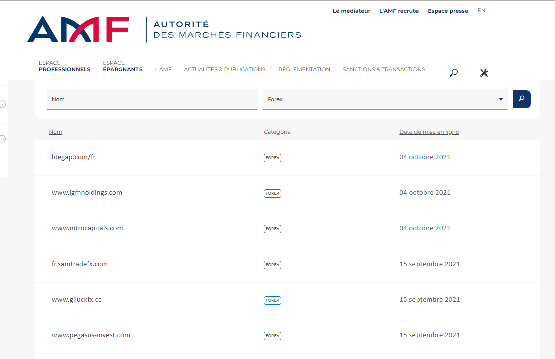 Ito ay isang listahan ng Autorité des Marchés Financiers (AMF) na naka-blacklist na mga kumpanya o website, mga babala at/o usurpation ng mga kinokontrol na kumpanya.