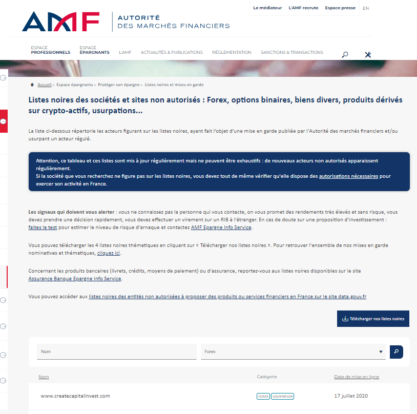 Ito ay isang listahan ng Autorité des Marchés Financiers (AMF) na naka-blacklist na mga kumpanya o website, mga babala at/o usurpation ng mga kinokontrol na kumpanya.