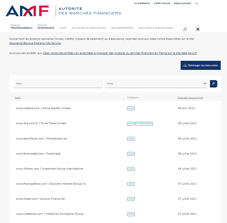 Ito ay isang listahan ng Autorité des Marchés Financiers (AMF) na naka-blacklist na mga kumpanya o website, mga babala at/o usurpation ng mga kinokontrol na kumpanya.