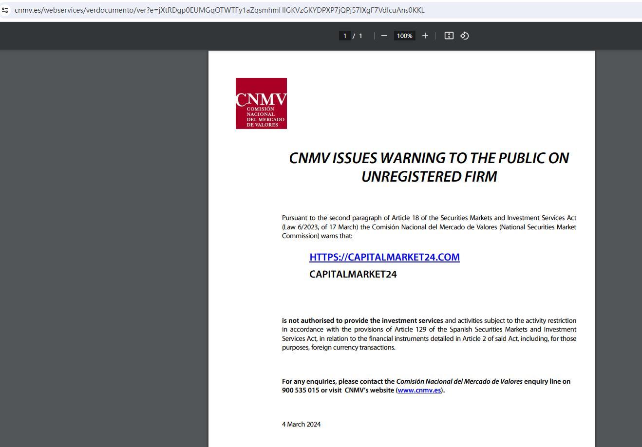 Ang National Securities Market Commission (CNMV) ay ang katawan na may pananagutan sa pangangasiwa at pag-inspeksyon ng mga merkado ng mga security sa Espanya at ang aktibidad ng lahat ng mga kasangkot sa kanila. Ang CNMV ay nilikha ng Batas sa Market Market 24/1988, na kumakatawan sa isang masusing reporma sa segment na ito ng sistemang pinansyal ng Espanya; at mula noon, ang rehimen nito ay na-update upang umangkop sa ebolusyon ng mga pamilihan sa pananalapi at upang ipakilala ang mga bagong hakbang upang maprotektahan ang mga namumuhunan.Ang layunin ng CNMV ay tiyakin na ang transparency ng mga merkado ng securities ng Espanya at ang tamang pagbuo ng mga presyo, pati na rin ang proteksyon ng mga namumuhunan.