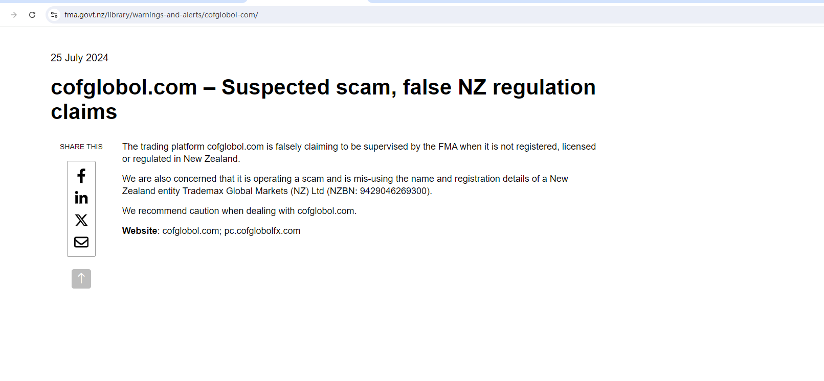COFglobol.com – pinaghihinalaang scam, maling nz regulation claims