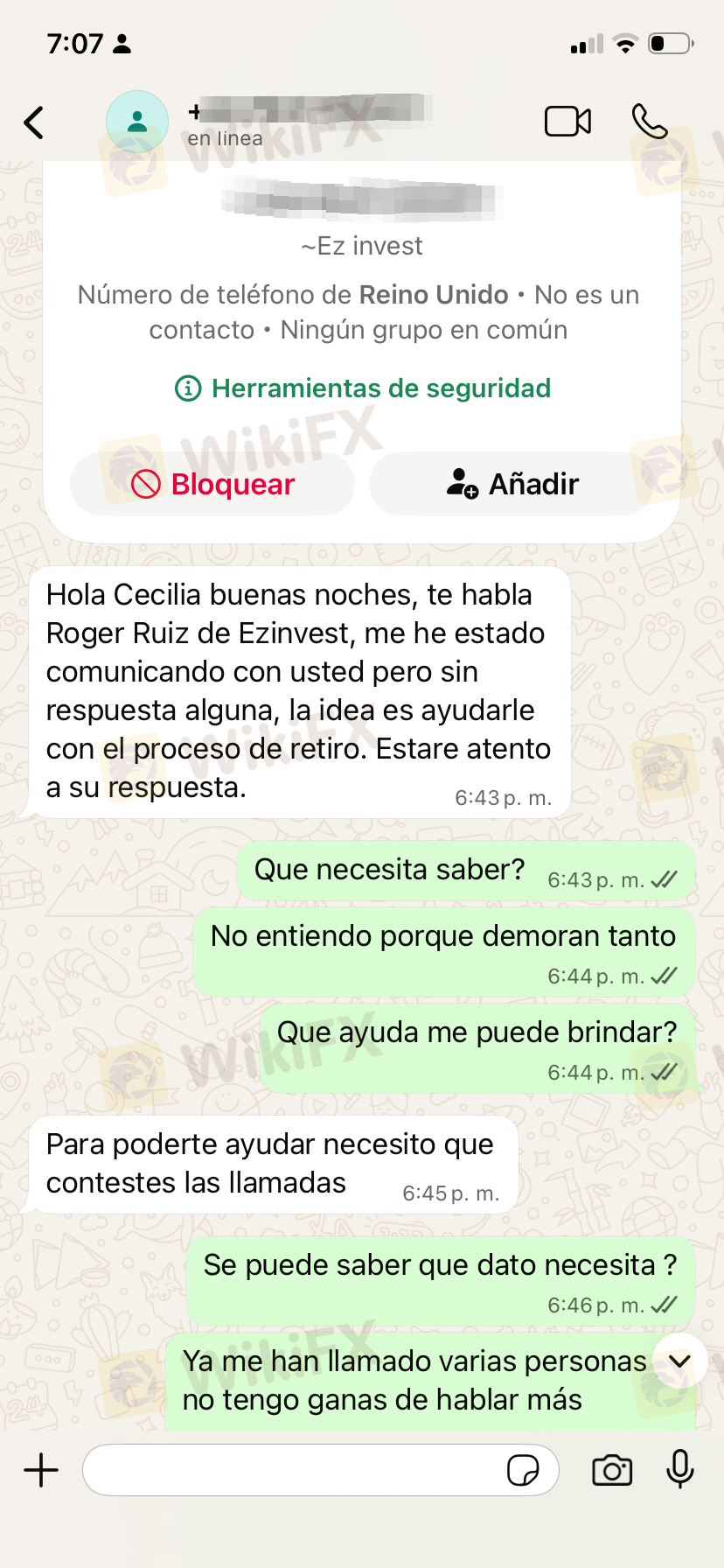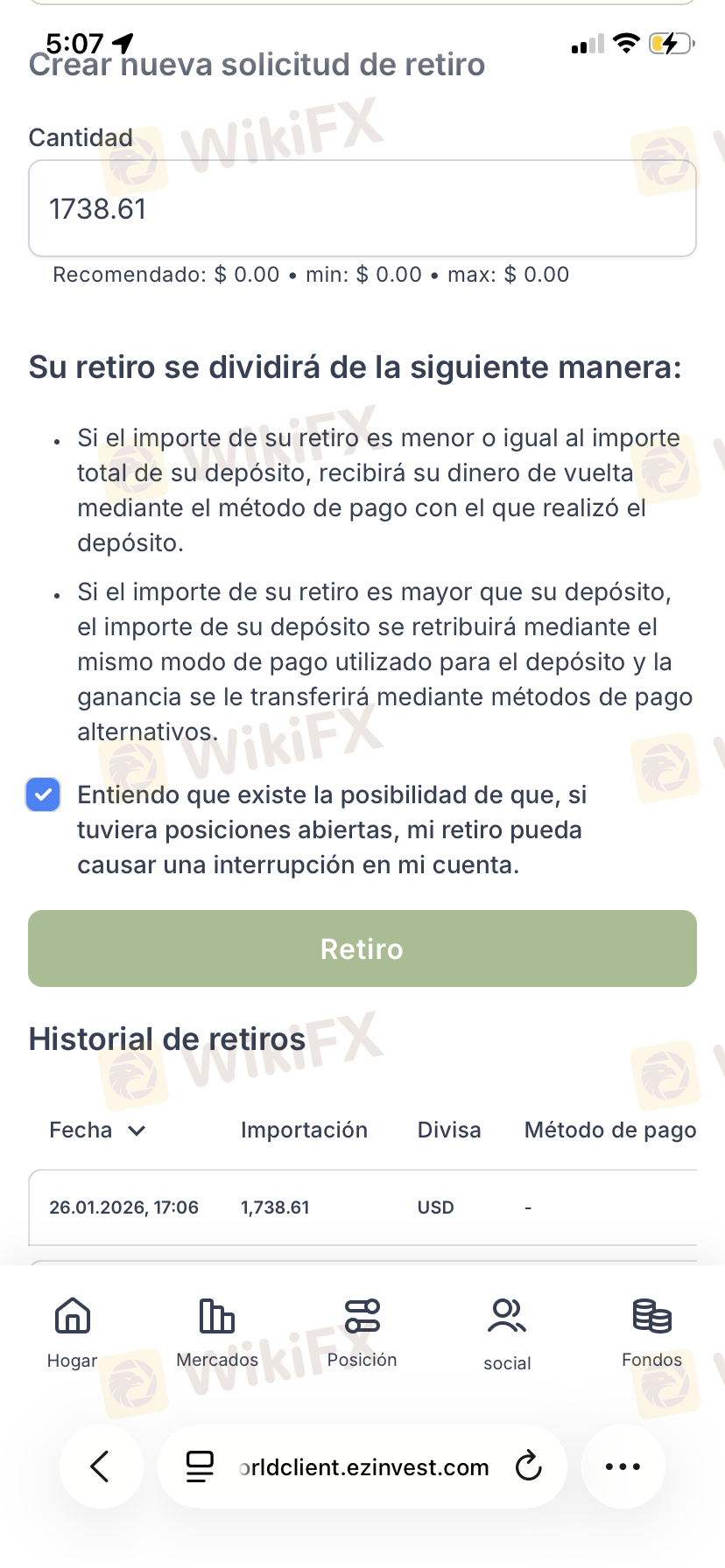 Nagsimula ako sa 1.700 at para makapag-withdraw ng 630, pinadeposito pa nila ako ng 1.800... Nagawa ko ang withdrawal na iyon at pagkatapos ay pinadeposito nila ako ng 8.000, na sinasabing sa halagang iyon ay makikita ko na ang mga kita. Dalawang beses akong tinawagan ng tagapayo at hindi na muling tumawag, at ngayon gusto kong mabawi ang aking puhunan at hindi pa rin magawa.