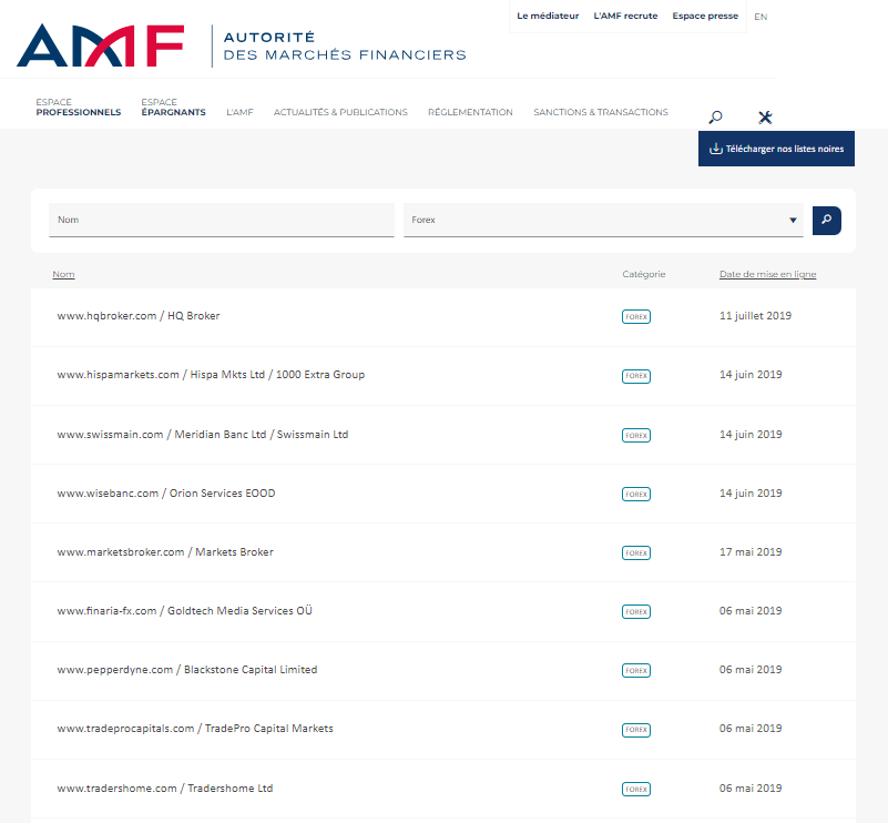 Ito ay isang listahan ng Autorité des Marchés Financiers (AMF) na naka-blacklist na mga kumpanya o website, mga babala at/o usurpation ng mga kinokontrol na kumpanya.