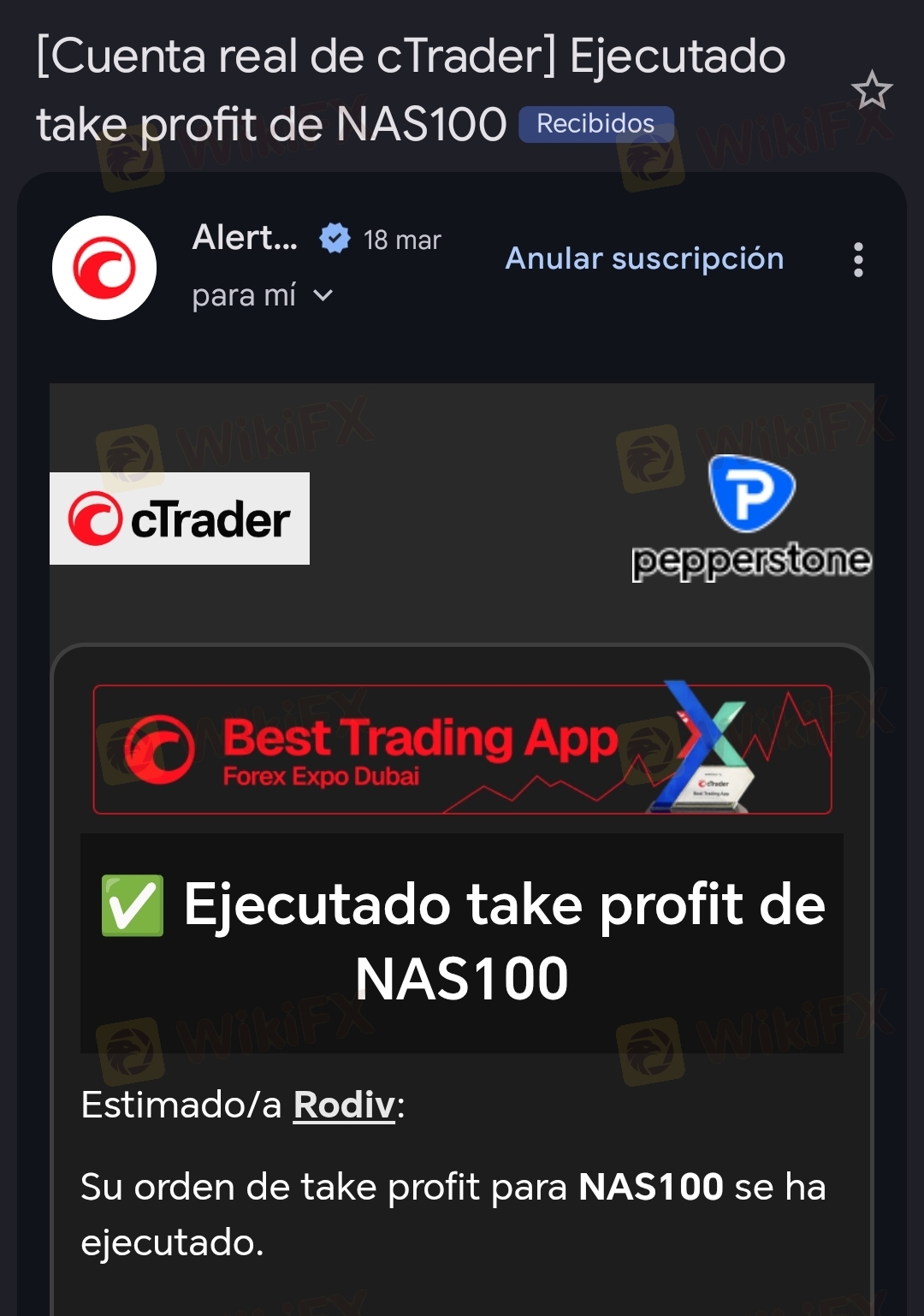 Le 7 février 2024, j'ai demandé un retrait avec Pepperstone, qui était de 4k USD et à ce jour je n'ai pas reçu le retrait, ils l'ont fait comme un remboursement ARN, je leur ai écrit plusieurs fois et la seule chose qu'ils commentent est que j'ai vérifié avec la banque BBVA, c'est déjà plus que validé avec la banque et le capital n'arrive pas sur mon compte, je n'avais jamais eu de problèmes avec les retraits avec ce courtier jusqu'à présent et c'était pour un montant important, le problème est que j'ai demandé des retraits plus petits qui sont arrivés sans problème, seulement ce retrait qui est plus important, par coïncidence, il ne m'est pas parvenu.