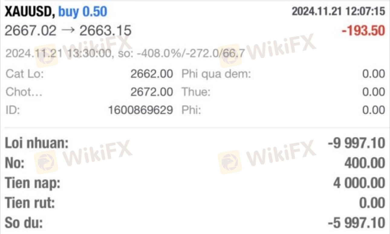 J'avais initialement déposé 2500$ et réalisé un bénéfice de 3228,59$, puis un ajustement de trésorerie P&L de -3226,69$ a été effectué par eux sans aucune explication. L'argent m'a simplement été volé, comme le montrent les captures d'écran et les relevés. J'avais un solde de 5536$ hier et ils ont volé 3226,69$, ne me laissant que 2310$ et m'ont permis de retirer l'argent. Mon compte avait un effet de levier de 1:500. Mes bénéfices de 3226,69$ ont été volés sans raison après l'ajustement de slippage, me faisant perdre beaucoup d'argent. C'est un courtier frauduleux.