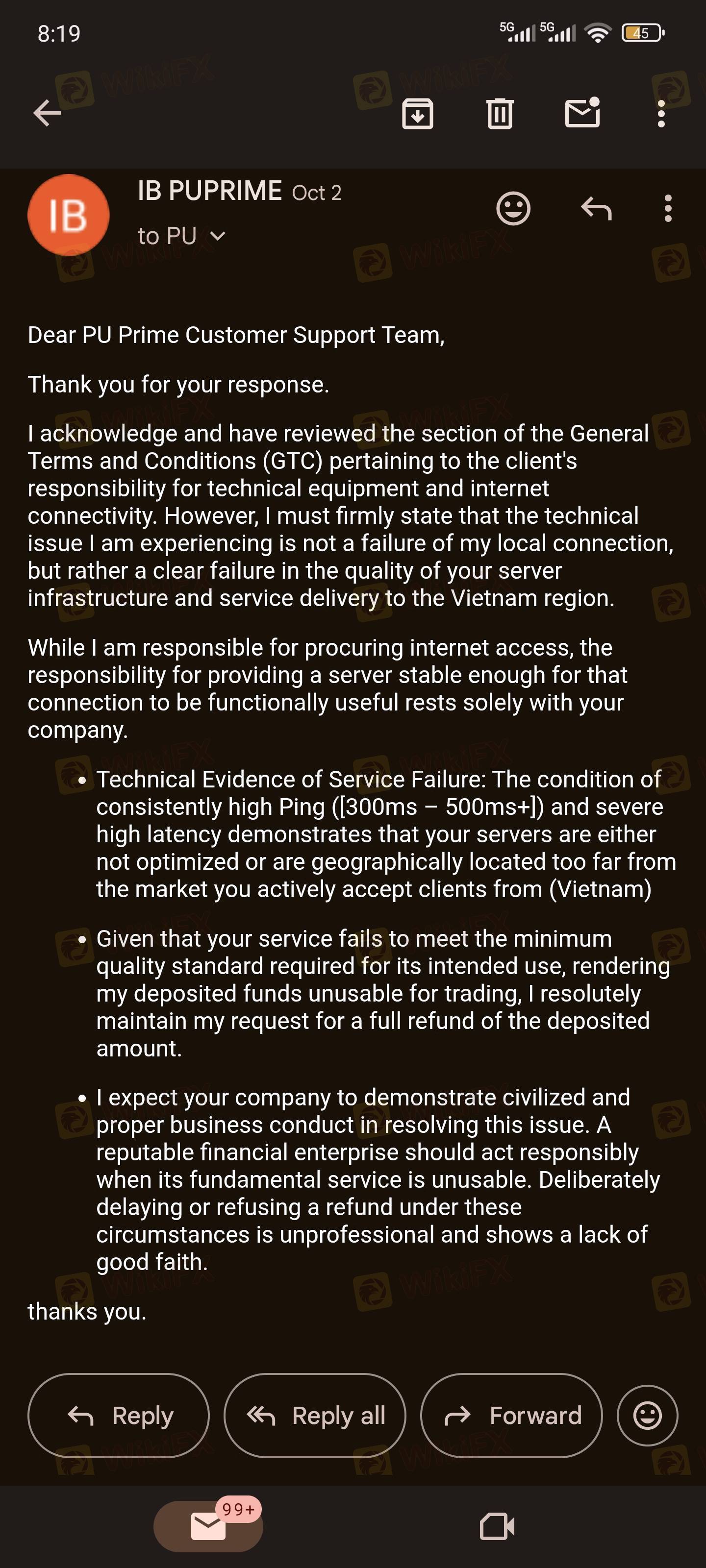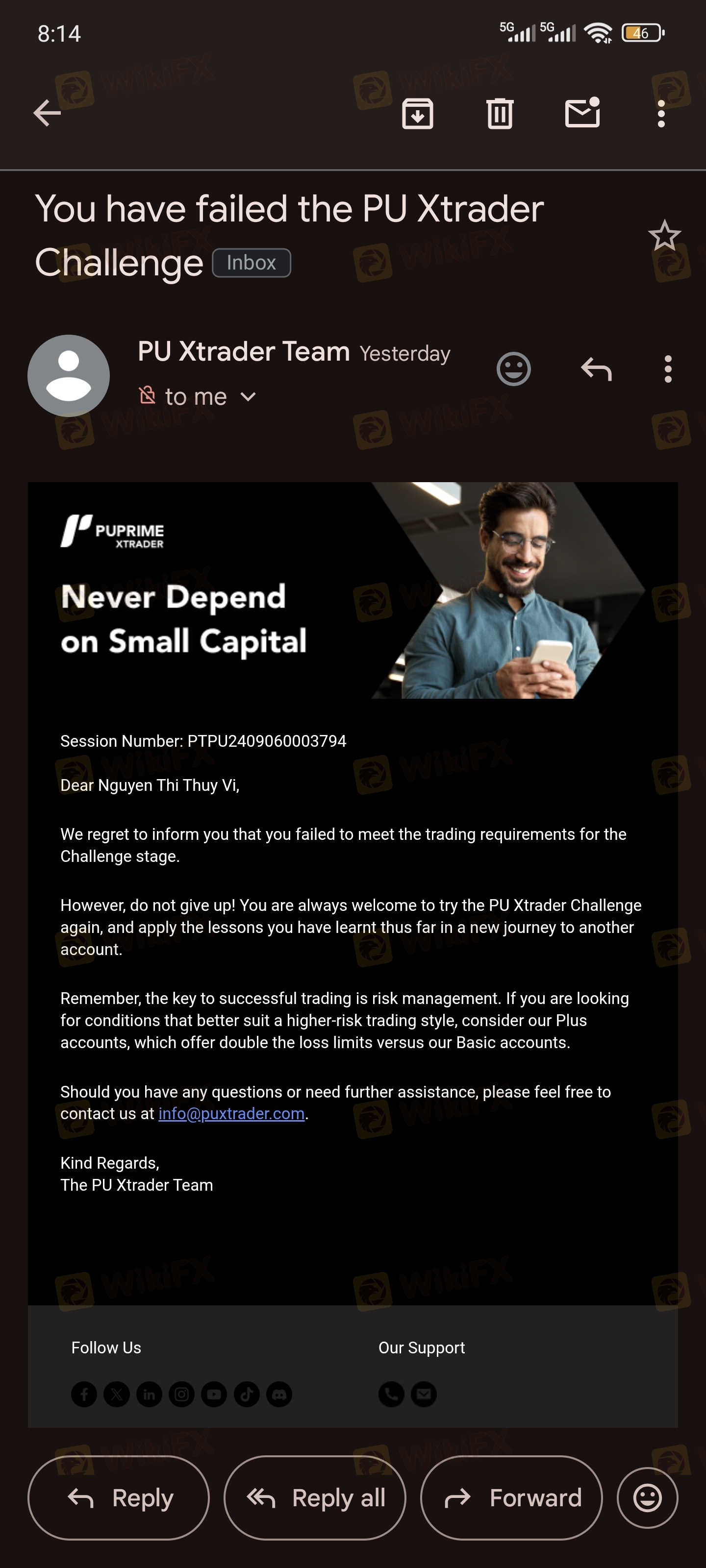 PU Prime propose une assistance clientèle via plusieurs canaux, notamment par téléphone, par e-mail et par chat en direct. L'équipe d'assistance clientèle est disponible 24h/24 et 5j/7, du lundi au vendredi. Ils sont réactifs et compétents, et peuvent aider avec diverses questions liées au compte telles que l'ouverture de compte, le financement et les problèmes techniques liés à la plateforme de trading. De plus, le courtier dispose d'une section FAQ complète sur son site web qui couvre un large éventail de sujets, notamment les types de compte, les instruments de trading, les plateformes de trading, le financement, et plus encore.