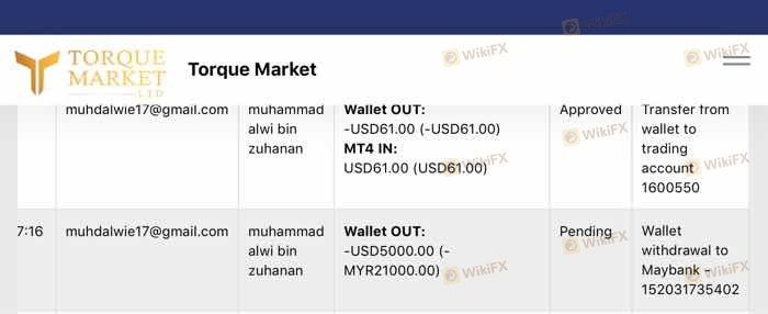 Je ne peux pas retirer mon bénéfice du compte Torque Market Ltd