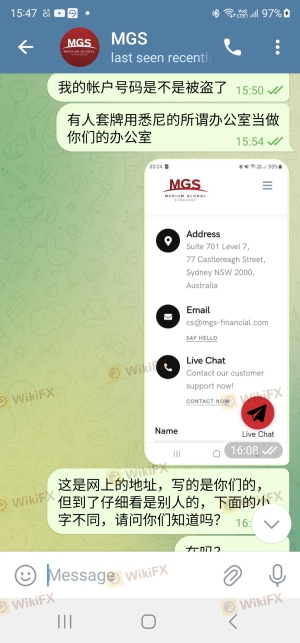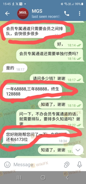 J'ai investi dans la plateforme MGS sur recommandation d'un ami. Tout se passait bien jusqu'à ce que je demande à retirer mon argent, il y avait des retards car de nombreux clients attendaient de retirer. L'équipe de support m'a dit que si je payais les frais réservés aux membres, je pourrais retirer mon argent en moins de 3 jours. J'ai effectué le paiement le 16 mars et jusqu'à présent, je n'ai pas reçu mon retrait. J'ai fait une réclamation auprès de l'équipe de support et ils m'ont simplement ignoré. Aujourd'hui, j'ai reçu un e-mail du siège de MGS expliquant que nous avions été trompés par leurs agents de support externes. Le paiement des frais était un mensonge et la plateforme affiliée n'était plus légalement autorisée ! Ils disent qu'ils vont résoudre ce problème et qu'ils enverront bientôt un relevé. J'attends juste que mon ARGENT me soit remboursé, S'IL VOUS PLAÎT AIDEZ-MOI à effectuer le retrait de mon argent !!!!