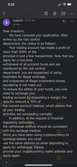 La plate-forme d'arnaque ne donne pas de retraits et ne répond pas aux e-mails.