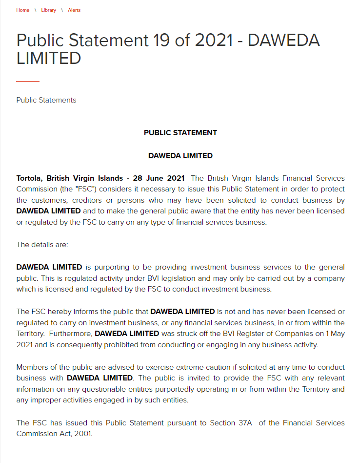 La promulgation de la Loi de Commission des Services Financiers en décembre 2001 a établi la British Virgin Islands Financial Services Commission (FSC) en tant qu'une autorité réglementaire autonome resposable pour la permission, la régulation, la supervision de tous les services financiers dans et à partir de l'intérieur des BVI, qui inclut l'assurance, la banque, les services fiduciaires, les affaires fiduciaires, le management des sociétés, les affaires d'investissement, et les services d'insolvabilité, ainsi que l'enregistrement des sociétés, les partenariats limités et la propriété intellectuelle. Depuis 2002, la FSC a assumé la responsabilité des fonctionnements réalisés auparavant par le Gouvernement à travers du Département des Services Financiers. La FSC, comme régulateur des services financiers, est également responsable de promouvoir la reconnaissance publique du système financier et ses produits, contrôlant la périmètre d'activité réglementée, réduisant les crimes financiers, et prévenant l'abus du marché.