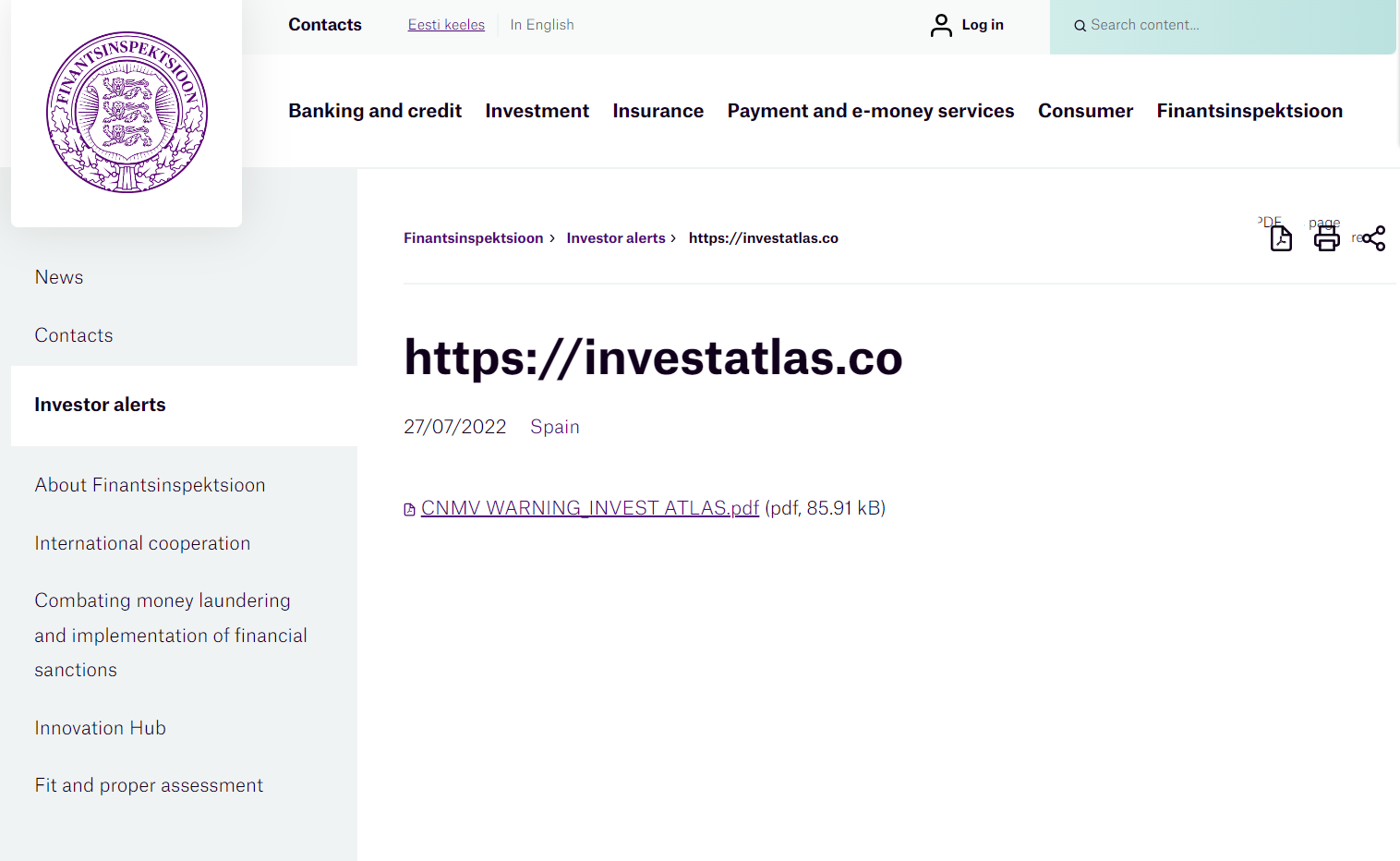 Alerte aux investisseurs Finantsinspektsioon Alerte aux investisseurs.