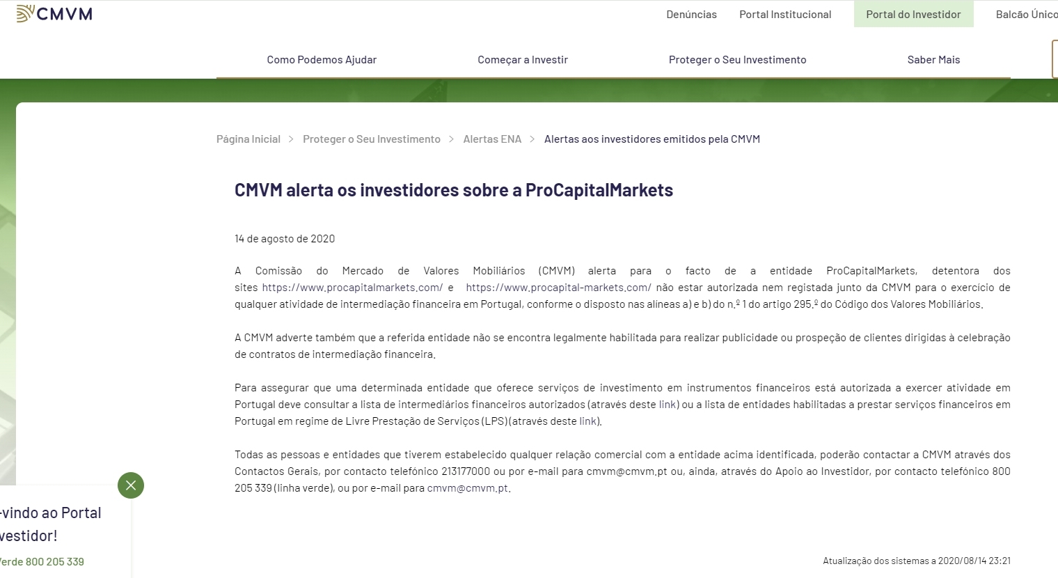 CMVM met en garde les investisseurs contre ProCapitalMarkets