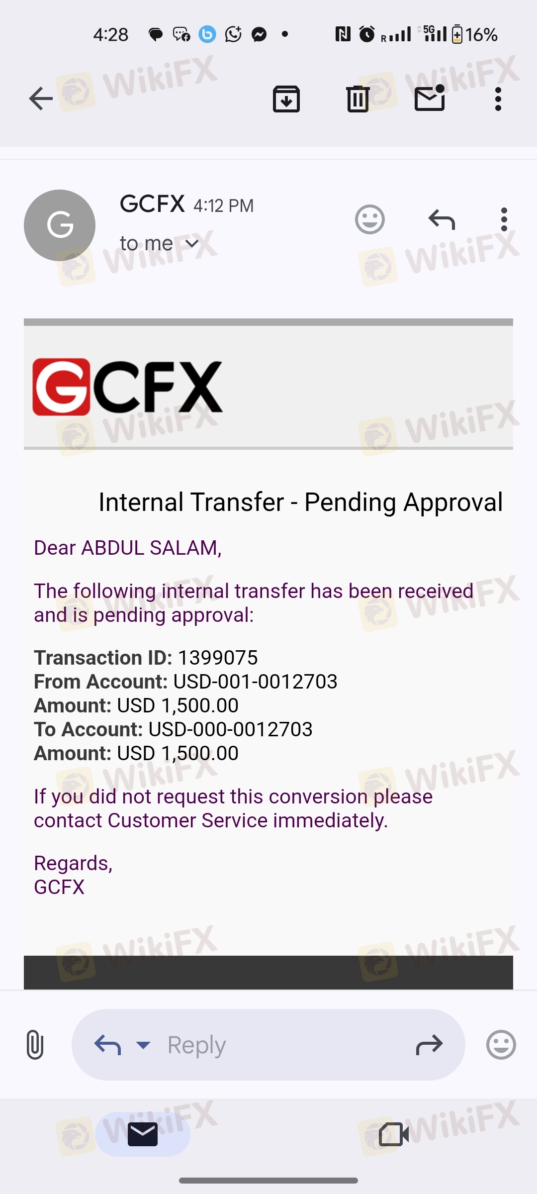 I was assured a bonus credit during onboarding, which was one of the main reasons I joined GCFX. However, the bonus was removed from my account just 3 days after joining, without my permission or any explanation. Even after 5 days of follow-up, this issue remains unresolved.