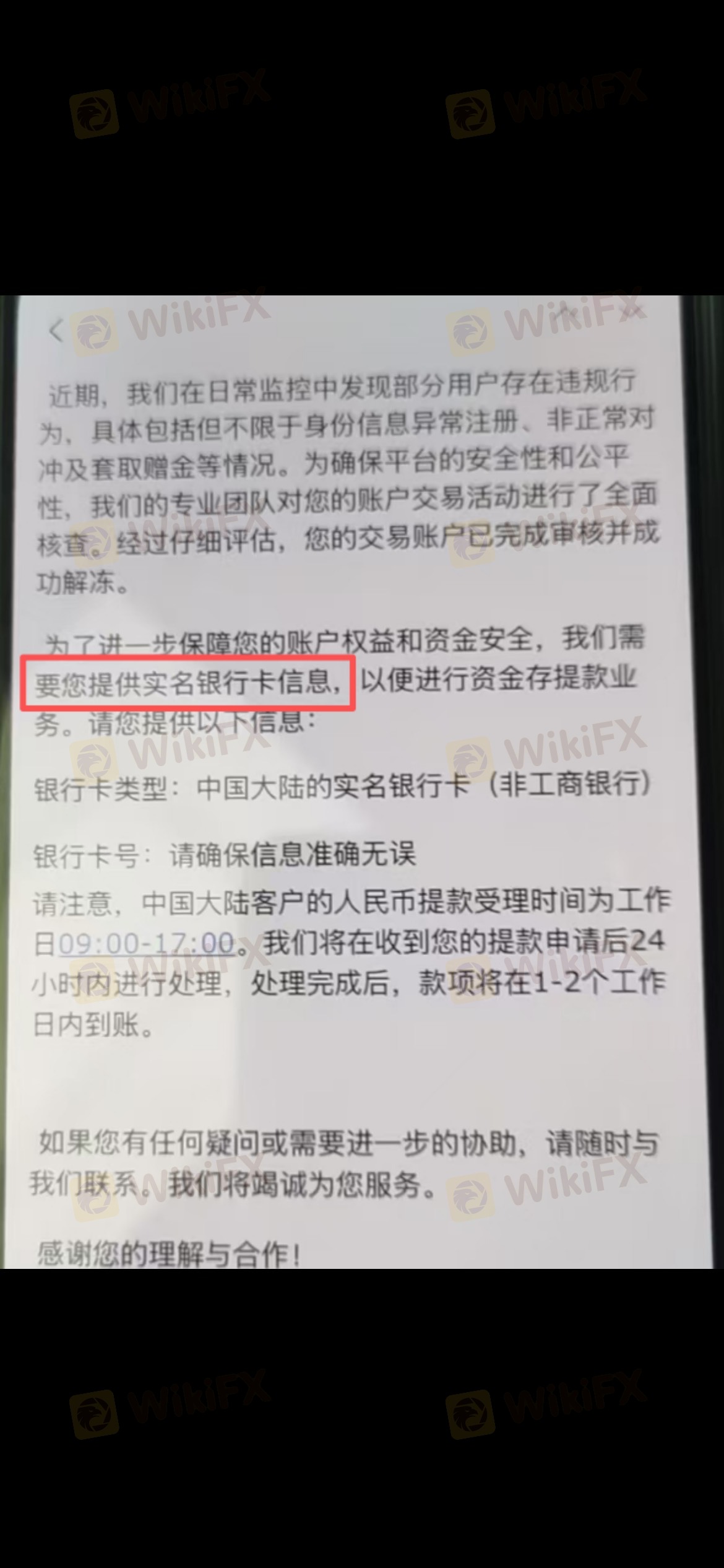 说是让对冲,最后本金都不给出, 要求出银行卡,没一点格局
