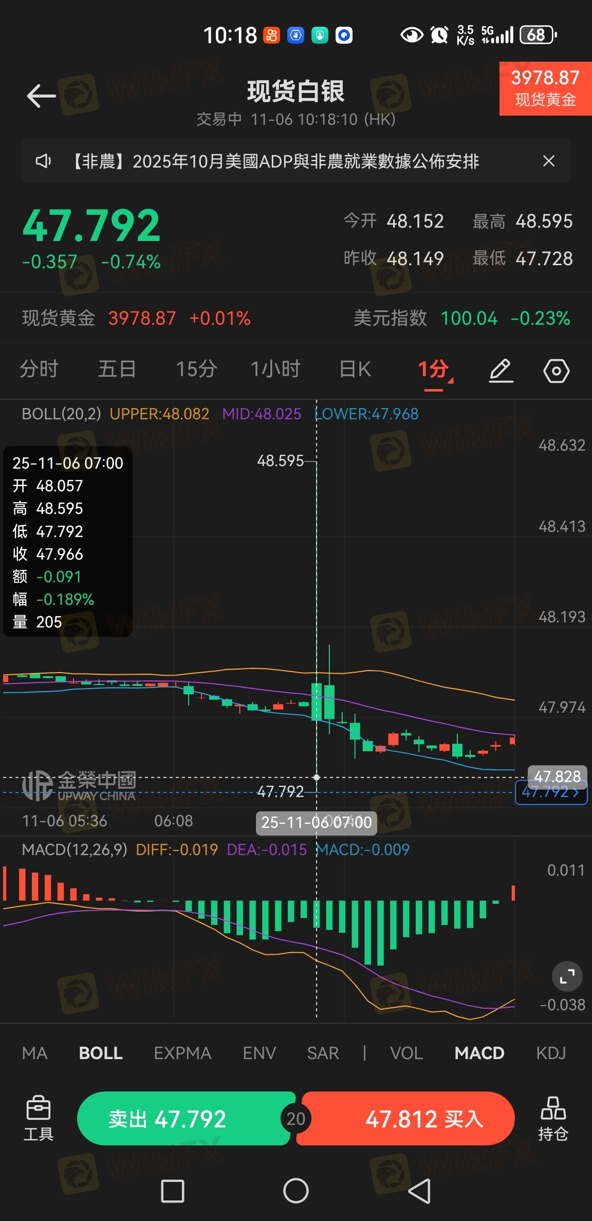 这家平台是黑平台违规操作,不按市场价格开走,随意更改价格,之前没注意,就11.6号早上七点开盘感觉不对劲,他家平台上下突然上下扫盘,最高3985.51,伦敦银更离谱11月六号早上七点开盘上下扫盘一分最高点在48.595,我的仓位本来买得都是卖盘,上午可以盈利一倍多的,他的假数据直接把我扫损,这一天我才发现他们是黑平台