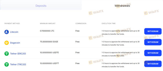 The withdrawal process is what matters the most, and they have it good. The range of withdrawal methods is big, but honestly, most of them are crypto based. I didn't use all of them, just USDT TRC20.
