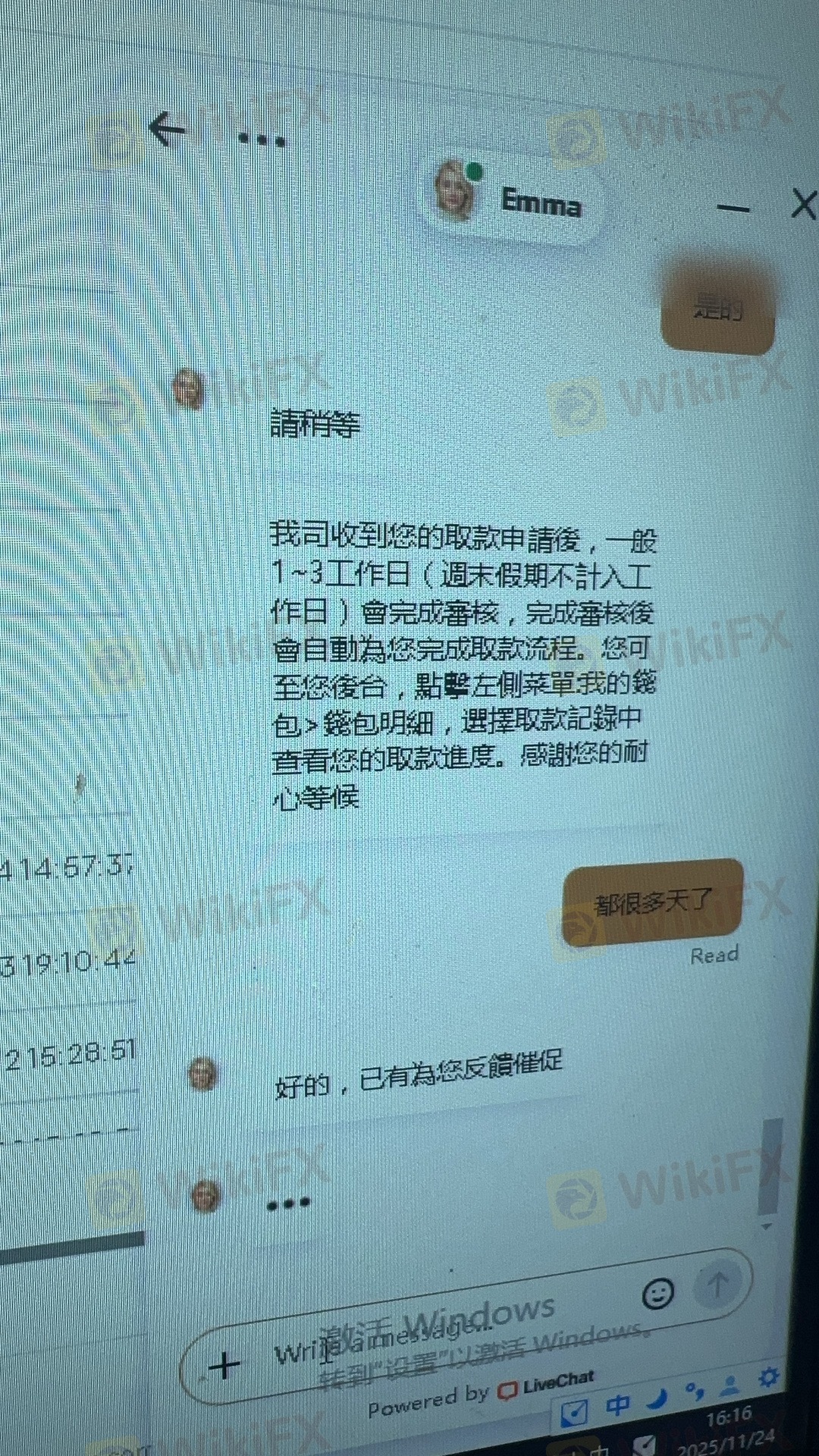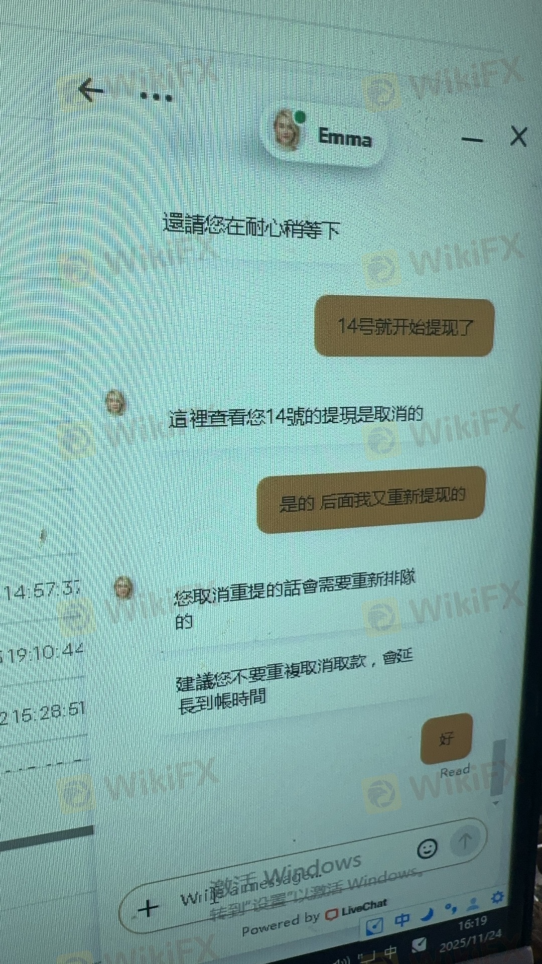 Veuillez indiquer que mon compte a été ouvert et déposé en août et que j'ai passé une commande courte de 0,7 pétrole brut. Ce n'était pas dans les premières heures de négociation et j'ai encore perdu de l'argent avant la fin du mois d'août. Début septembre, j'ai fait un retrait de profit, en septembre ? J'ai fermé toutes les positions et réalisé un profit tous les jours, demandé un retrait et reçu un e-mail de la plateforme m'informant que la transaction illégale n'avait été réglée que jusqu'au 30 août et que le profit de septembre n'avait pas été calculé, et mon mt4 le mot de passe du compte et le mot de passe de connexion en arrière-plan ont été modifiés. En attendant l'avis de révision, la soi-disant violation ne peut pas être dite. En fait, les commerçants ne peuvent que perdre de l'argent sur cette plateforme et ne peuvent pas gagner d'argent. Sinon, pourquoi ne pas donner de l'argent ? Maintenant, mon ami me dit que cette plateforme est une plateforme en marque blanche que j'ai achetée au nom de capitaux étrangers, il est donc très probable que ma commande n'ait pas été vendue sur le marché. Même des milliers de dollars de profit ne peuvent être retirés. Pourquoi ce type de plateforme est-il juste et équitable à promouvoir sur le marché ? Nous avons fourni à la plate-forme l'e-mail de réclamation, mais il n'y a pas eu de réponse et le gestionnaire de compte ne s'en est pas occupé. Désormais, nous ne pouvons négocier avec la plateforme que par l'intermédiaire d'un tiers et rendre justice à nos commerçants. Si le problème n'est pas résolu, nous nous battrons avec la plate-forme jusqu'au bout. La plateforme se retire du marché des changes.