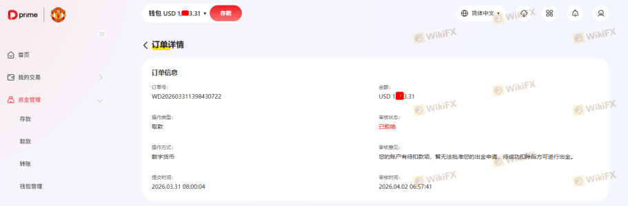 Problème de retrait de fonds Prime