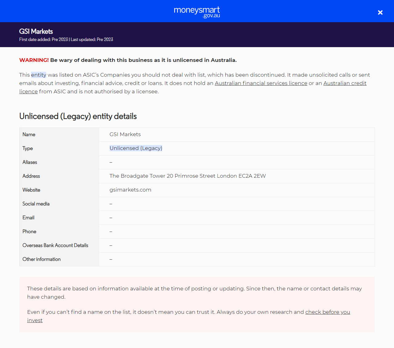 L'Australian Securities and Investments Commission (ASIC) est un corps indépendant du gouvernement australien qui agit comme un régulateur coopératif australien, qui a été créé le 1er juillet 1998 suivant les recommendations d'enquête Wallis. Le rôle de l'ASIC est d'appliquer les lois des services financiers pour protéger les consommateurs, investisseurs et créanciers australiens. L'autorité et le cadre de l'ASIC étaient déterminés par la Loi 2001 de la Commission des bourses et des investissements australienne.