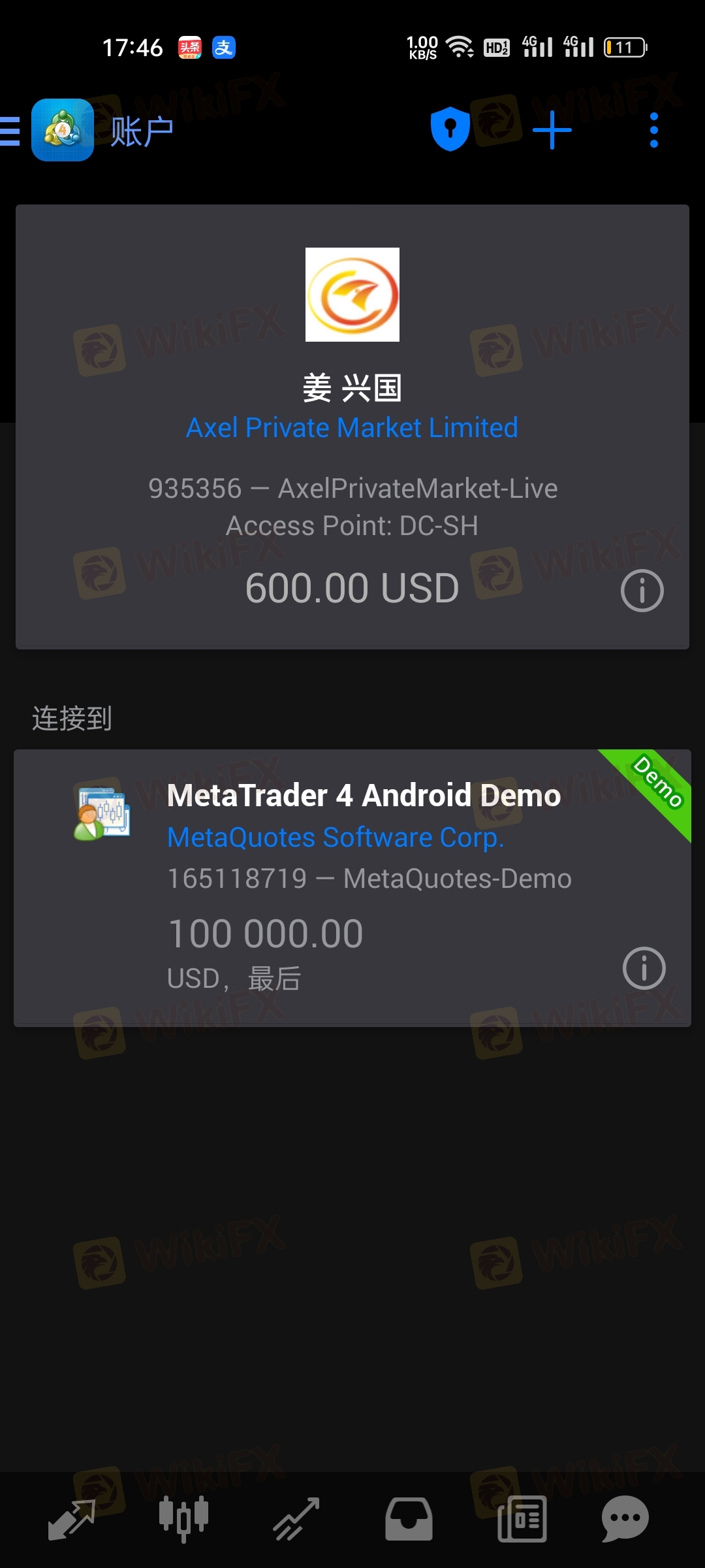 AXEL शेयरों, CFDs, कमोडिटीज, सूचकांक, क्रिप्टो और मुद्राओं पर व्यापार की सुविधा प्रदान करता है।