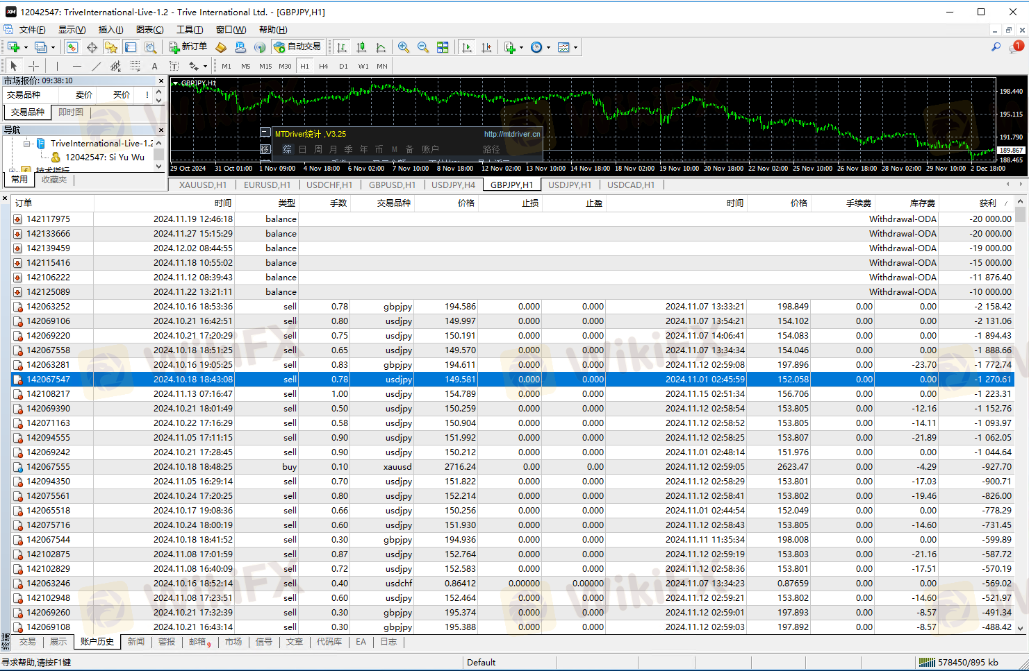 本人吴思宇,于2024年10月经业务员介绍在TRIVE平台开户并进行交易,开户账号为:12042547。开始时因为对行情判断失误,导致账户亏损,期间一直入金,以免账户爆仓。中期时开仓、平仓,有亏有盈,出入金均正常(此时账户为亏损账户,入金大于出金)。到了后期,行情走向有利方向,账户从亏损变成盈利账户,此时申请盈利出金,平台便对账户进行无理卡控,出金不处理,后期交涉无果,平台直接从账户中扣除18698.72美金。对于TRIVE平台这种无理行为,我坚决要曝光,对广大用户提醒,远离此黑平台。让这种只能让用户亏损,不能盈利的黑平台退出市场。希望各方监管平台,媒体能够督促该平台,归还我的18698.72美金。谢谢!坚决抵制黑平台,从身边朋友做起。